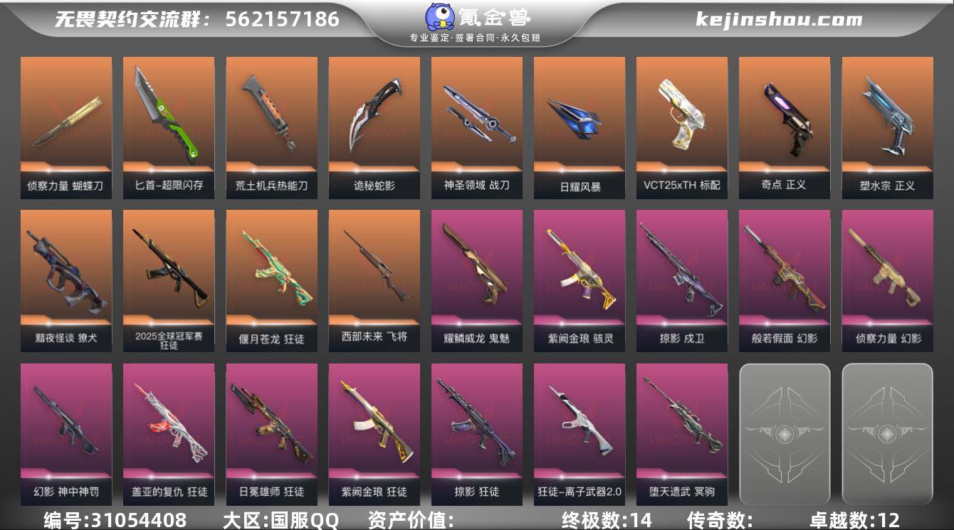 【PTWW2791】终极*19/卓越*6/皮肤*98/等级*139/段位:青铜/2025全球冠军赛/幻棱/炼狱/维斯/暮蝶/钛狐/壹决/铁臂/捷风/雷兹/幽影/不死鸟/贤者/猎枭/蝰蛇/零/芮娜/奇乐/尚勃勒/霓虹/斯凯/夜露/星礈/K/O/海神/盖可/黑梦/钢锁/2025全球冠军赛 蝴蝶刀/紫金爪刀/威龙之刃/鬼丸国纲/荒土机兵热能刀/夜刃诡镰/诡秘蛇影/神圣领域 战刀/日耀风暴/星际猎兵 短剑/2025全球冠军赛 狂徒/狂徒-归零者/狂徒-洪荒怒焰/狂徒-塑水宗/狂徒-创·纪元/狂徒-虚空遗器/狂徒-噬影者/多弥尔的复仇 狂徒/狂徒-盖世英雄/狂徒-盖亚的复仇/狂徒-起源/狂徒-离子武器2.0/狂徒-荒土机兵/狂徒-诡秘蛇影/幻影-天界神兵2.0/幻影-神中神罚/幻影-神圣领域/幻影-纳米打击/幻影-末日之翼/戍卫-逆冲蛮牛/戍卫-月球哨兵/戍卫-折光棱晶/獠犬-神圣领域/獠犬-逆冲蛮牛/冥驹-荒土机兵/冥驹-星云暗涌/飞将-末日之翼/莽侠-诡秘蛇影/莽侠-月球哨兵/战神-神圣领域/奥丁-纳米打击/奥丁-末日之翼/判官-诡秘蛇影/判官-纳米打击x/雄鹿-逆冲蛮牛/雄鹿-月球哨兵/骇灵-荒土机兵/骇灵-无限竞技/骇灵-星云暗涌/蜂刺-星云暗涌/蜂刺-折光棱晶/标配-荒土机兵/标配-折光棱晶/正义-纳米打击/正义-月球哨兵/鬼魅-诡秘蛇影/鬼魅-宿怨/鬼魅-星云暗涌/狂怒-神圣领域/狂怒-逆冲蛮牛/短炮-末日之翼/进入射程 卡面/分崩离析 卡面/纳米打击 卡面/抑制技术 卡面/激斗汉堡 卡面/瓦娃脸雪糕 P2 卡面/从黄昏到黎明 卡面/荒土机兵 卡面/银弹猎手 卡面/逆冲蛮牛 卡面/《双城之战》拥抱 卡面/精灵大战 卡面/欢迎来到底城 卡面/南瓜盛典 卡面/热舞环节 卡面/正义的化身 卡面/树懒大作战 卡面/红鳞松叶 卡面/无畏契约GO!第一卷:芮娜 卡面/无畏契约GO!第一卷:零 卡面/无垠星环 卡面/战术小伙伴 卡面/无畏契约GO!第一卷:贤者 卡面/钢锁vs盖可 卡面/萌彩剪影 卡面/代号红色 卡面/新兵报到 卡面/V契约...