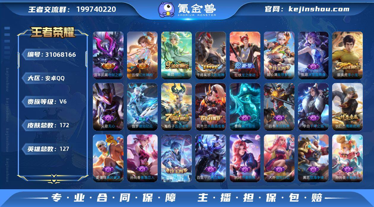 【XY355】贵族6/皮肤172/传说5/史诗40/英雄127/孙权全皮/影全皮/后羿神树通天/幻光神枪/鸣野蒿/久胜战神/地狱之眼/蒙犽顽岩魄/天穹之誓(s36)/破阵·退雄兵/阴阳师/皇家上将/蔷薇恋人/无心/魔术师/万华元夜(s22)/海滩派对/醍醐杖(s20)/演武夺筹(s23)/云中旅人(s29)/原初探秘者(s21)/五谷丰年/混沌棋(s18)/大漠名商(s28)/疑决卦(s19)/李小龙/擒涛扼浪(s31)/探海日志(s32)/海盐诗旅(s30)/古海寻踪(s33)/鬼谷子天穹祈灯(S34)/琥珀纪元伽罗/妄想食味/龙武盛年/剑破天穹(s35)/程咬金群星魔术团/熔金海岸/噬灭天穹(s37)/谧流熔炉/逆浪荇歌/亚瑟荣光之誓/周瑜线条小狗/小乔线条小狗/冰雪圆舞曲/偶像歌手/地狱岩魂/鬼剑武藏/水果甜心/魅力维加斯/金属风暴/幽灵船长/千年之狐/末日机甲-吕布/乱世虎臣/水晶猎龙者/德古拉伯爵/乘风破浪/缤纷独角兽/冰冠公主/特工魅影/逐浪之夏/功夫厨神/节奏热浪/猫狗日记-大乔/鹰眼统帅/怒海争锋/万物之道/龙之律动/百相守梦-黄忠/织梦人/涂山容容/女娲万灵启世/少司缘巫礼祀神/教廷特使/街头霸王/忍·炎影/白色死神/救世之瞳/玩偶对对碰/死亡骑士/拳王/五福同心/花好人间/阿尔法小队/纽约教父/龙腾万里/海滩丽影/命运角斗场/功夫老勺/沉稳之力/掌控之力/敏锐之力/幻乐之宴/守护之力/幽兰居士/丁香结/鲨炮海盗猫/圆桌骑士(盾山)/秘密基地/重装意志/乓乓大师/唤灵魔甲/契约魔法/蔚蓝守将/潮玩造梦师/幻泉雾影-海月/潮玩探月行/牛运亨通/太极少年/劲辣红锅/妄想特派/幻夜行动/完美运算/时空谍影/漠中幻影/功夫炙烤/暗都幽影/敬我三分/雾都夜雨/苍林狼骑/铁骨偃魂/魅影绮裳/雪境奇遇-西施/星梦巡礼/玫蓝誓约/浪漫序章/春野闲踪/灵野札记/布丁狗之约/命运加冕/死霸装/云械蓝图/锦麟游梦/踏浪烽翎/克喵/罗小黑战记/张良罗小黑战记/孙权径山谋武/艾琳鹤鸣心笺/曹操逐霄之志/蚩奼极光幻客/虞姬溯影追...