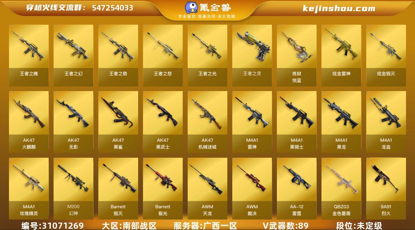 9951/【钱包无法注销】/南部/广西一区/可排位/【传奇4】【Lv.100 高阶大元帅】VIP6/89V/幻神/幻神冠军之幻/王者风神/青龙/QBZ金色蔷薇/*2/6烈龙/盘龙/*2/无影神兵利器/M4玫瑰精灵/裁决/极光/【音效卡】/雷神音效卡/黑骑士音效卡/火麒麟音效卡/毁灭音效卡/【枪皮】/毁灭英雄计划/毁灭黑大圣/毁灭星空/火麒麟心动糖果/火麒麟AG战队/【四防】/王者潘多拉/灵狐者职业经理/【角色】/瞳/战地猎狐/王者零/铁扇公主/乔伊教练/云海玲珑/【道具】/永久烟雾头/护目镜/超级背包/各种戒指/各种光效/各种玩偶/永久AC/永久雷包/细节看图/