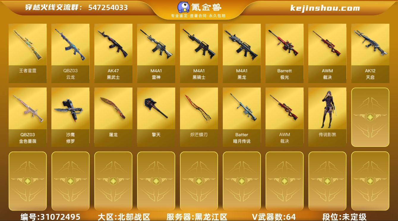 9845/北部/黑龙江区/【荣耀枪王382豆】/Lv.80 大校5/VIP6/64V/【四防传说】/传说影煞/王者星霆/【QBZ三件套】/QBZ金色蔷薇/QBZ金色蔷薇音效卡/QBZ冠军之薇/QBZ云龙/朱雀电竞之星/王者凌虎/金色蔷薇古蛇迷踪/云龙套/柯尔特冠军之特/COP云龙/*2/USP雷暴/炽芒蝶刃/冠军之刃/4修罗/极光/六套云龙雷/【音效卡】/黑骑士音效卡/屠龙动感闪耀音效卡/【枪皮】/火麒麟心动糖果/雷神拼搏/雷神化蛇/【四防角色】/华/【小人枪】/朱雀蛇隐宗/迷你白狐/【道具】/永久烟雾头/护目镜/超级背包/各种戒指/各种光效/各种玩偶/永久AC/永久雷包/细节看图/【此账号封十年已解】