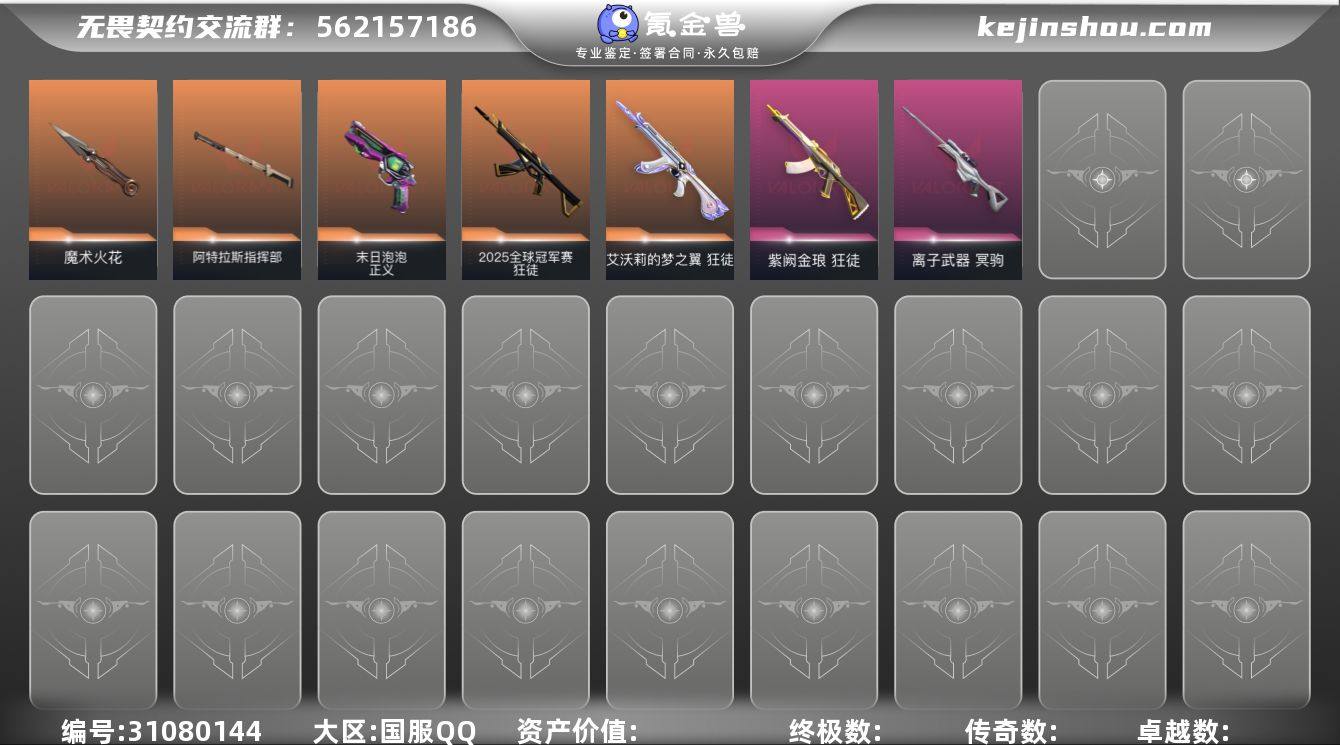 近战武器皮肤: 阿特拉斯指挥部,魔术火花-奇幻朋克3.0 步枪皮肤: 狂徒-紫阙金琅,狂徒-艾沃莉的梦之翼,2025全球冠军赛 狂徒 佩枪皮肤: 正义-末日泡泡 狙击枪皮肤: 冥驹-离子武器
