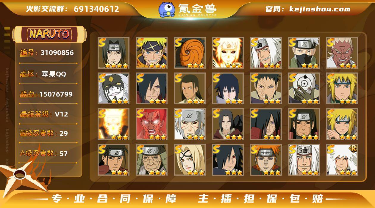 区服:115区 实名:可二次实名 贵族等级:V12 战力值:15076799 S忍数:29 A忍数:57 四星宇智波鼬「须佐能乎」,三星漩涡鸣人·宇智波佐助,三星宇智波斑「五影会谈」,三星波风水门「九喇嘛连结」,三星自来也「传说中的三忍」,三星旗木卡卡西「须佐能乎」,三星艾「忍界大战」,三星大筒木桃式,三星宇智波斑「秽土转生·解」,三星千手柱间·木叶创立,三星宇智波佐助「永恒万花筒」,三星宇智波带土「忍界大战」,三星宇智波斑「白面具」,三星波风水门,三星漩涡鸣人「九喇嘛连结」,三星迈特凯「死门」,三星千手扉间「秽土转生」,三星宇智波鼬「秽土转生」,三星宇智波斑「秽土转生」,三星千手柱间「秽土转生」,三星波风水门「秽土转生」,三星千手柱间,三星猿飞日斩「秽土转生」,三星纲手「百豪」,三星宇智波斑「木叶创立」,三星佩恩「天道」,三星自来也,三星自来也「舞之豪杰」,三星大蛇丸 五星蝎,五星干柿鬼鲛,五星猿飞阿斯玛,五星迈特凯,四星飞段「死司凭血」,四星飞段,四星我爱罗「疾风传」,二星迈特凯「青春爆炸」,二星纲手「妖怪奇谭」,二星巳月「仙人模式」,二星大野木「侠隐江湖」,二星机械鸣人「初始形态」,二星土台「忍界大战」,二星桃地再不斩「秽土转生」,二星神农「羁绊」,二星宇智波泉奈,二星蝎「绯流琥」,二星李洛克「忍界大战」,二星旗木卡卡西「幻之真容」,二星日向雏田「最终章」,二星漩涡博人「桃式显现」,二星小南「漂泊浪客」,二星日向宁次·忍界大战,二星长十郎「六代目水影」,二星宇智波止水,二星长门「青年」,二星佩恩·六道「漂泊浪客」,二星艾「青年」,二星达鲁伊「五代目雷影」,二星波风水门「青年」,二星千手扉间「漂泊武士」,二星奇拉比「忍界大战」,二星宇智波止水「新春限定」,二星黑土「博人传」,二星猿飞阿斯玛「七夕限定」,二星宇智波佐助「须佐能乎」,二星桃地再不斩「漂泊武士」,二星迪达拉「秽土转生」,二星猿飞木叶丸「博人传」,二星漩涡鸣人「九尾查克拉」,二星千代「近松十人卫」,二星药师兜「半蛇斗篷」,二星宇智波鼬「新春限定」,二星我爱罗「忍界大战」,二星秋道丁次「忍界大战」,二星大蛇丸「晓」,二星春野樱「百豪」,二星波风水门「新春限定」,二星照美冥「五代目水影」,二星宇智波佐助「万花筒写轮眼」,二星奇拉比,二星漩涡鸣人「仙人模式」,二星旗木卡卡西「万花筒写轮眼」,二星角都「地怨虞」,二星小南,二星迪达拉,二星宇智波鼬 卖家说:买后包一年超影,同账号王者v7