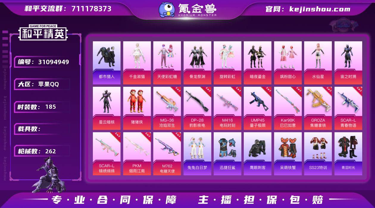 【都市猎人满级GROZA焦糖拿铁10粉装10特效枪 秒换绑不用等】 苹果Q区-85681热力值-13印记-185套装-262枪皮 【1稀有】 都市猎人【10粉装】 天使彩虹糖 旋转彩虹 水仙星 宙之时溯 星云暗核 玩偶服-猪猪侠 骨龙祭渊 暗夜鎏金 飒粉甜心 角色-千金淑猫【10特效枪】 GROZA-焦糖拿铁(7级) SCAR-L-青春物语(5级) SCAR-L-锦绣绵绵(5级) M762-电糖天使(5级) Kar98K-巳巳如意(5级) M416-电玩时刻(5级) PKM-江南烟雨(5级) DP-28-豹影疾电(5级) MG-36-沧焰双生(5级) UMP45-量子极限(5级)【78热门】 浪漫天命 鹰眼刺客 破蛋小黄鸡 小丑鱼 迅捷狂鲨 英勇保护者 暗夜契约 暗影哥特(红眼罩) 纯白誓言 豚鼠丹丹 白色伏地魔 TianBa战队服 SS27特训 SS26特训 SS25特训 SS24特训 SS23特训 SS22特训 Mk14-纯梦嫁纱 Mini14-梦幻火箭 M24-歌者泠鸢 AKM-缤纷海域 SCAR-L-玉兔迎春 GROZA-田园牧歌 M762-天降萌叽 M762-彩虹符号 Mk47-乌木金纹 SKS-糯团青竹 Mini14-旋转彩虹 UZI-娇憨猪猪 UMP45-蓝色火焰 DBS-彩虹符号 M249-彩虹符号 MG3-幻世战舞者 AKM-霓虹街区 M416-紫翼圣骑 呆萌铁蟹 M416-暗夜行者 M416-蓝色火焰 GROZA-异彩先驱 GROZA-彩虹符号 AUG-灵符少年 M762-第五大道 长空猛禽 弄潮海豚 异彩先驱 虚音幻奏 甜心亚梦 特训学院 青涩时光 平底锅-五爪金龙 牛气冲天 霓虹街区 霓虹极客 妙红点点 懵萌河马 魅力单车 猎鹰 黎明保卫者 蓝色运动 竞技达人朋克 黄色运动 漫步者 黄色伏地魔 红色运动 黑色伏地魔 和煦暖阳 海岛探路者 风暴特警 纯真浪花 兔兔白日梦 M762-奇异狩猎者 AKM-彩虹符号 M416-糯团青竹 Kar98K-彩虹符号 M249-妙红点点 MG3-乌木金纹 AKM-冰凉西瓜【4飞行器】 红色滑翔尾迹 炫彩糖果飞行器 万古烈焰飞行器 繁龙极客飞行器【1背包】 深海小丑鱼背包 营地ID:762423274