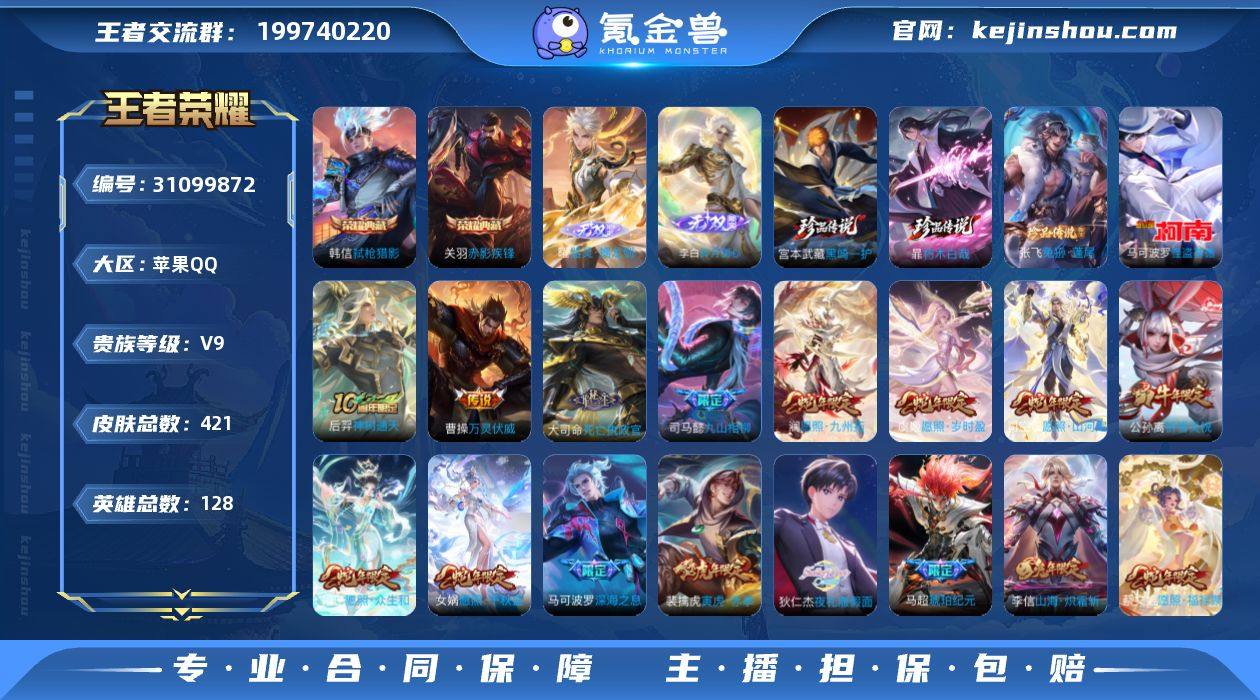 一个QQ账号售卖两个游戏,还有一些网游。王者v9精品号,和平该有的身法套装也有。具体详情,可以找我拿图给你分享,有意者来