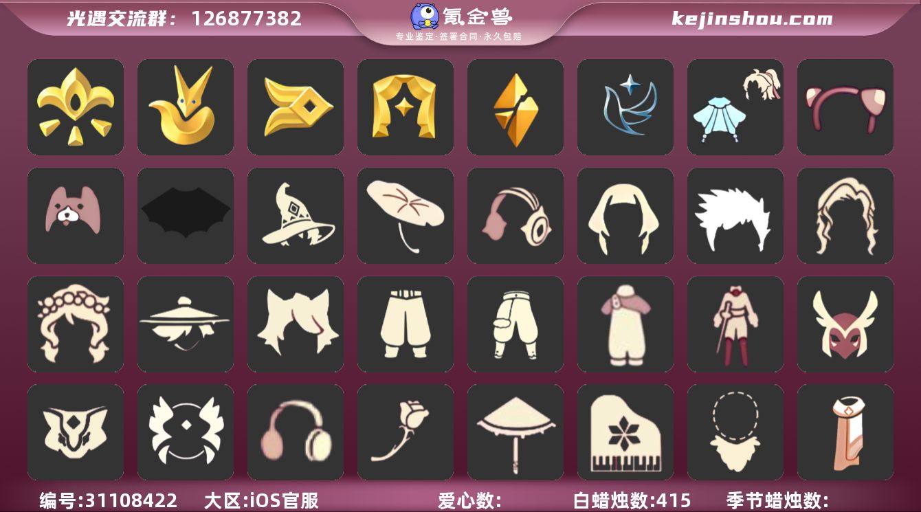 巫师帽白枭彩虹耳机白雪斗篷武士裤透明蝶翼虚荣正太头详情看图价格可谈资源:蜡烛700 爱心5 红烛90 翼10 已毕业地图:雨林 霞谷 毕业季节:潜海季 表演季 破晓季 欧若拉 追忆季 夜行季 归巢季 半拾光 毕业季节物品: 暗红斗篷 单边小辫 氧气面具 燕尾斗篷 黄眉企鹅面具 白枭发型 双翼遥鲲斗篷 冥龙斗篷 留辨蘑菇头 高领舞服 透明蝶翼斗 肩带 追忆之书 棕熊面具 绒毛斗篷 五塑彩羽发 五塑彩带斗 稀有礼包:巫师帽 橘子发饰 玉兔发卡 星月头冠 彩虹耳钉 彩虹耳机 圣诞鹿角 白雪斗篷 冥龙号角 热门裤子:背带裤 遥鲲长裙 绑带舞服 墨绿长裤 海浪阔腿裤 白棉裤 搓澡巾 紧身连体衣 武士裤 小丑服 女仆围裙 米色西装裤 热门面具:矮人面具 黄鼠狼面具 潜海面具 黄眉面具 一字眉 棕熊面具 盲僧眼罩 龙头 玫瑰花面具 玫瑰面具 黑脸 粽叶发带 黑框眼镜 热门发型:海草头 爆炸头 雨妈 卡卡 平菇 蝴蝶结 公主头 粗辫 水母头 书虫 总裁头 正太头 高马尾 明制帽 郡主头 斗笠 绿丝带 虚荣 白枭 圆环发辫 留辫蘑菇头 李逍遥发型 彩色脏辫 彩羽发型 樱花头 猫耳 女巫发型 巫师帽 热门头饰:花环 珊瑚发饰 蓝色音乐节 红耳机 单边发饰 橘子发饰 玉兔发卡 星月头冠 彩虹耳钉 彩虹耳机 圣诞鹿角 热门斗篷:五星斗篷 红金斗篷 黑金斗篷 蝴蝶斗篷 汉服斗篷 燕尾服斗篷 暗花斗篷 冥龙斗篷 遥鲲长豆 展翼圆环斗篷 透明蝶翼 小浣熊斗篷 绒毛斗篷 布丁斗篷 布条斗篷 镂空斗篷 樱花斗篷 马蹄莲斗篷 地球日斗篷 海洋斗篷 旋涡斗篷 彩虹斗篷 暗彩斗篷 白雪斗篷 热门背饰:追忆围巾 相机 吊床 星星灯 鲲灯 女巫茶桌 粽叶吊床 冥龙号角,归巢季,潜海季,表演季,破晓季,欧若拉季,追忆季,夜行季