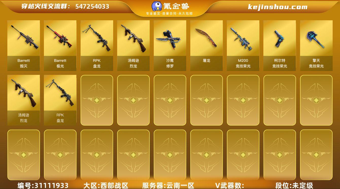 7651/西部/云南一区/可排位/26v/【竞技荣光套/200竞技荣光/柯尔特竞技荣光/擎天竞技荣光/】/机械迷城穹宇/炼狱百战金芒/【角色】/零纪元/葵阿尔法武装/奇洋探员/【音效卡/炼狱百战金芒庆典舞曲音效卡/】/【枪皮】/毁灭枪娘格雷姐妹/【小人枪/天龙曼陀罗/】/永久AC/有过十年记录/找回包赔
