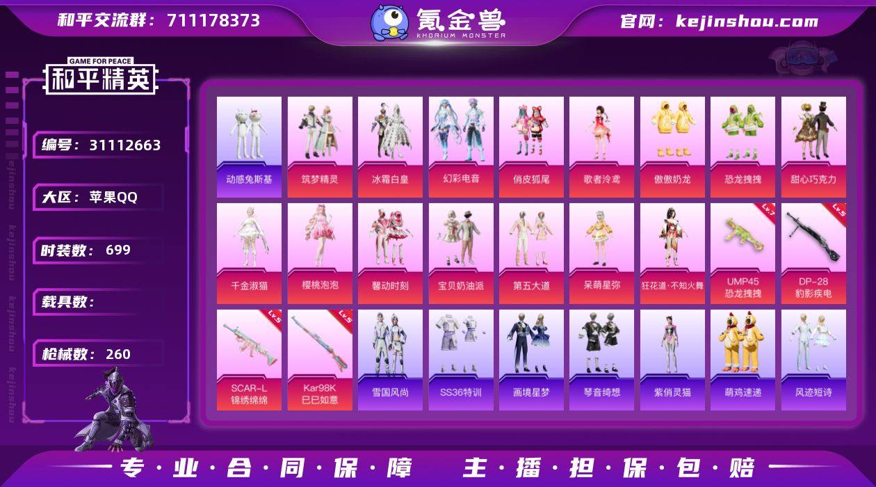 热力值:82500 时装数:699 枪械数:260 战备数:207 游戏等级:67 卓越印记:5 传奇印记:2 绝世印记:2 傲傲奶龙,宝贝奶油派,冰霜白皇,呆萌星弥,第五大道,歌者泠鸢,幻彩电音,狂花道·不知火舞,恐龙拽拽,千金淑猫,俏皮狐尾,甜心巧克力,馨动时刻,樱桃泡泡,筑梦精灵 七级UMP45-恐龙拽拽,五级DP-28-豹影疾电,五级Kar98K-巳巳如意,五级SCAR-L-锦绣绵绵 炫彩糖果降落伞,炫彩糖果飞行器,神秘黑猫飞行器,星夜魔法师飞行翼,暗夜玫瑰降落伞,垂柳戏鸭降落伞,第五大道降落伞,绯穹魔姬降落伞,歌者泠鸢降落伞,金丰海韵降落伞,精灵梦叶罗丽降落伞,橘柚倾心降落伞,恐龙拽拽降落伞,冷漠罗丽降落伞,萌物绒绒降落伞,千金淑猫降落伞,圣堂之誓降落伞,甜心宝贝降落伞,星穹咏叹调降落伞,音爆索尼克降落伞,猪猪侠降落伞 雪国风尚,画境星梦,琴音绮想,SS36特训,萌鸡速递,紫俏灵猫,风迹短诗,秘语星愿,SS35特训,午间小调,元气之梦,美羊羊,喜羊羊,薄荷星砂,云魄琉璃,狂鲨锋刃,凌霄紫焰,擎苍青焰,SS34特训套装,朱霞炽焰,爱崽白熊,缤纷果语,北国孤狼,白辉玉蕊,冰河战士,白兰地假日,白糯汤圆,贝斯之夜,白熊同盟,春光漫游,雏菊兔兔,长空猛禽,丛林猎人,纯真浪花,顶瓜瓜,动感兔斯基,蝶变,大橘大利,都市魅力,蝶吟花词,飞驰魅影,绯格组合,粉恋花,飞行日记,龟仙人,光之冒险,幻彩翩翩,海岛探路者,鹤鸣,湖蓝色名流,湖畔霞光,幻世战舞者,浑天鲲鹏,和煦暖阳,红熊茄茄,幻羽潜行,极地朋克,酒红色名流,惊鸿侠骨,娇憨猪猪,竞技达人朋克,竞技名士,竞技勇士朋克,吉莉礼服,极速光影,街头潮人,街头风暴,军械专家,锦衣飞扬,酷潮明星,空岛之星,快闪甜心,蓝冰羽,蓝彩潮人,龙的传人,蓝海鲸歌,龙魂突击队,萝兰蝴蝶,黎明保卫者,浪漫假日,灵蜜圈圈,蓝色运动,龙腾端午,莱茵河畔,恋语绒绒,冷焰舞者,漫步者,摩登魅猫,猛禽,妙红点点,棉花软糖,萌黄之夏,魅力单车,麻辣教官,懵萌河马,曼妙人鱼,萌萌史莱姆,萌趣咩咩,明鸳圣池,卖崽青蛙,霓虹极客,霓虹街区,柠萌假日,浓情蜜辣,牛气满满,牛仔情诗,破蛋小黄鸡,轻风白浪,情公主,沁蓝冰爽,青年教官,俏皮奶喵,青团波波,俏兔智灵,云朵鹅,绒宝小鹅,热情海星,热血青春,韶华初心,深海梦境,神气柴柴,沙丘之歌,SS19特训,SS20特训,SS21特训,SS22特训,SS23特训,SS24特训,SS25特训,SS26特训,SS27特训,SS28特训,SS29特训,SS30特训套装,SS31特训套装,SS32特训套装,SS33特训套装,巳巳如意,探宝勇士,甜蜜熊情侣,豚鼠丹丹,特殊使命,涂山之恋,兔兔白日梦,糖糖葫芦,特训学院,甜心亚梦,田园牧歌,完美偶像,王牌教练,小狗蛇点点,炫蓝之夏,小鸟芋圆,雪绒豹,夏日倾情,雪兔飞飞,香桃花海,星途旅人,香榭午后,小熊娃娃,虚音幻奏,星渊小夜曲,熠彩粉晶,跃动心情,耀粉歌者,雨林探路者,音速流光,玉兔迎春,野性战心,英勇保护者,焰鹰斗篷,鱼渊荷华,幽夜迷踪,燕燕于飞,异域银装,智谋强哥,紫幽梦 ACE32-冰晶雪宝,PKM-啾咪啾咪,AA12-G-画境星梦,ACE32-画境星梦,M1加兰德-画境星梦,MK12-乌木金纹,MP5K-画境星梦,平底锅-画境星梦,AKM-霓彩脉冲,Famas-霓彩脉冲,SLR-霓彩脉冲,十字弩-异瞳寒姬,DBS-风迹短诗,蜜獾-风迹短诗,MK12-风迹短诗,Mk47-风迹短诗,莫辛纳甘-风迹短诗,破片手榴弹-拽到爆炸,S12K-霓彩脉冲,SCAR-L-