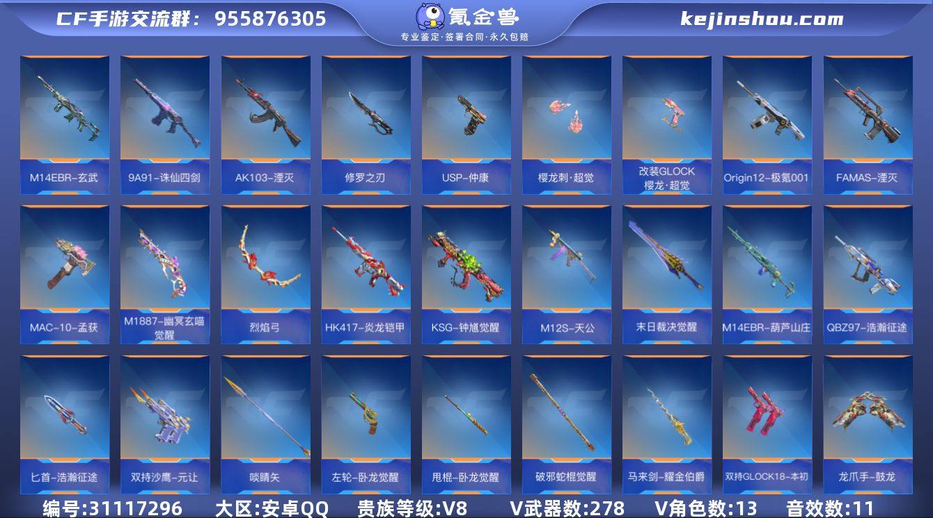 王者之势等众多王者武器,全套三国武器,7把cop,9套王者雷+全皮肤,s1赛季赏金令1100级,爆破生化挑战满配号!