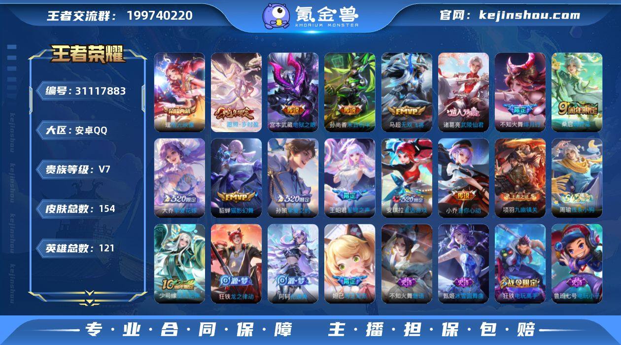 女神号 安卓Q-V7-永恒钻石I段位-121英雄-154皮肤-1典藏皮肤-14传说-45史诗LK2613112 【荣耀典藏】:瑶拾光映像 【传说皮肤】:后羿神树通天,虞姬愿照岁时盈,桑启鸣野蒿,安琪拉追逃游戏,不知火舞绯月行,王昭君星穹之声,马超无双飞将,大乔挚爱花嫁,孙策挚爱之约,小乔音你心动,貂蝉猫影幻舞,诸葛亮武陵仙君,孙尚香末日机甲,宫本武藏地狱之眼 【限定皮肤】:蒙犽顽岩魄,大乔绒语心约,姜子牙天穹之誓,狄仁杰阴阳师,赵云皇家上将,妲己热情桑巴,妲己时之奇旅,孙尚香蔷薇恋人,钟无艳超时空战士,白起夜都怪侠,甄姬落雪兰心,狄仁杰魔术师,项羽海滩派对,安琪拉追逃游戏,王昭君午后时光,王昭君星穹之声,兰陵王金庭之子,不知火舞绯月行,李元芳云中旅人,蔡文姬奇迹圣诞,鬼谷子五谷丰年,诸葛亮武陵仙君,大乔挚爱花嫁,梦奇顽趣,沈梦溪大漠名商,明世隐吟游魔法,裴擒虎擒涛扼浪,狂铁电玩高手,孙策挚爱之约,鲁班大师探海日志,桑启海盐诗旅,张良古海寻踪,妲己灵卜魔法,鬼谷子天穹祈灯,鲁班七号蔬乡物语,李元芳蔬乡物语,刘邦剑破天穹,周瑜熔金海岸 【年限皮肤】:虞姬愿照岁时盈 【赛季限定】:兰陵王金庭之子,沈梦溪大漠名商,李元芳云中旅人,桑启海盐诗旅,裴擒虎擒涛扼浪,鲁班大师探海日志,张良古海寻踪,鬼谷子天穹祈灯,刘邦剑破天穹,姜子牙天穹之誓,太乙真人谧流熔炉,钟馗虚灵犬护,甄姬逆浪荇歌,亚瑟荣光之誓,梦奇顽趣,牛魔星界战将,项羽九幽镇关 【战令限定】:明世隐吟游魔法,白起夜都怪侠,狂铁电玩高手,王昭君午后时光,钟无艳超时空战士,甄姬落雪兰心,妲己灵卜魔法,鲁班七号蔬乡物语,李元芳蔬乡物语,周瑜线条小狗 【史诗皮肤】:鲁班七号电玩小子,赵云皇家上将,赵云未来纪元,貂蝉圣诞恋歌,甄姬冰雪圆舞曲,王昭君偶像歌手,狄仁杰魔术师,廉颇地...