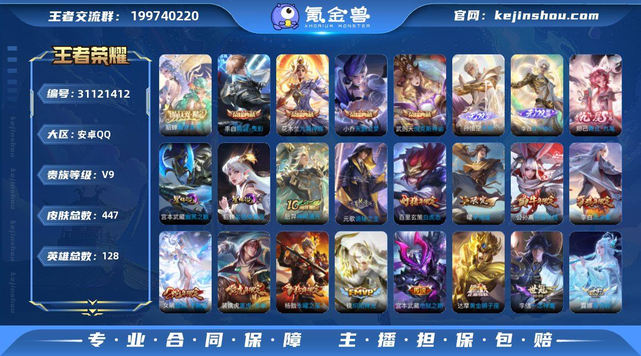 包括QQ号一起,QQ音乐有十几首单独购买的音乐,英雄除敖隐之外都有,半生皮肤基本全有,贵九447个皮肤
