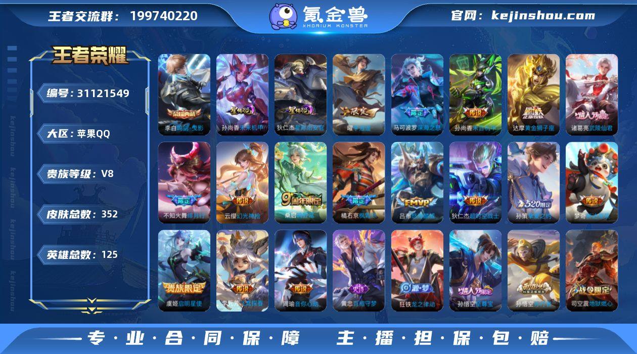 苹果手Q114区352皮1典藏16传说0无双V6 营地ID414238446永恒钻石I【荣耀典藏】:鸣剑·曳影【优质限定皮肤】:云中君时之祈愿,至尊宝【传说皮肤】:胖达荣荣,幻光神枪,鸣野蒿,启明星使,飞鸢探春,枫霜尽,深海之息,挚爱之约,武陵仙君,超时空战士,李逍遥 ,末日机甲,音你心动,黄金狮子座,绯月行,怒海麟威【史诗皮肤】:百相守梦,化蝶舞,暗夜贵公子,星界战将,月团寄思,绅士熊喵,紫霞仙子,遇见飞天,箭羽风息,地狱岩魂,战舞者,逐浪之夏,顽岩魄,曙光守护者,怒海争锋,心动手记,妄想食味,偶像歌手,蔬乡物语,末日机甲,荣光圣徽,百解令,特工魅影,地狱燃心,舞动绿茵,冰雪圆舞曲,匿光侦查者,江河有灵,鹤归松栖,电玩·爆裂旋风,心灵战警,心灵骇客,电玩小子,山海·玄木吟,黎明之约,摇滚巨星,青龙志,晚萤,吟游魔法,鬼剑武藏,百木心枪,玉兔公主,永昼,火炮绅士,一生所爱,云中君时之祈愿,功夫厨神,猫狗日记,如梦令,傲雪梅枪,匿光追影者,青春决赛季,金属风暴,水晶猎龙者,拒霜思,高山流水,猪悟能,孙行者,女仆咖啡,缤纷独角兽,航海奇遇记,逐梦之影,德古拉伯爵,冰锋战神,原初追逐者,云间偶戏,乱世虎臣,天才门将,纤云弄巧,狂想玩偶喵,圣诞狂欢,李小龙,修罗,暗影游猎,魔术师,至尊宝,未来纪元,星夜王子,银河之约,苍穹之光,飞衡,乘风破浪,驯魔猎人,梁祝,狮舞东方,鹰眼统帅,幽灵船长,天狼狩猎者,水果甜心,大圣娶亲,圣诞恋歌,皇家上将,冰冠公主,黄金分割率,千年之狐,魅力维加斯,顽趣,暗隐猎兽者,节奏热浪,无心,超时空战士,龙之律动,五谷丰年