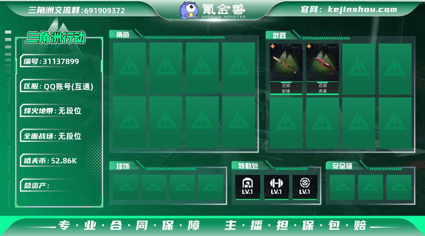WLSJZ908【新刀 赤枭 黑鹰 影锋 暗星】三端互通-总价值114.6M-哈夫币52861k-烽火地带等级60-烽火地带【近战武器】赤枭 黑鹰 影锋 暗星【枪皮】腾龙突击步枪-古铜 腾龙突击步枪-古铜 AUG突击步枪-天命 M4A1突击步枪-粉色涂装 M4A1突击步枪-高雅黑 M4A1突击步枪-繁盛 QBZ95-1突击步枪-高雅黑 QBZ95-1突击步枪-海浪 QBZ95-1突击步枪-三角洲力量 QBZ95-1突击步枪-2026 QBZ95-1突击步枪-曙光 AKS-74U突击步枪-磐石 ASh-12战斗步枪-繁盛 K416突击步枪-冬日风情 M16A4突击步枪-高雅黑 AUG突击步枪-浅蓝涂装 M7战斗步枪-黑巧甜心 M7战斗步枪-百步穿杨 SG552突击步枪-浅蓝涂装 SG552突击步枪-2026 SG552突击步枪-运动员 AK-12突击步枪-变色龙 SCAR-H战斗步枪-数码迷彩 G3战斗步枪-主宰 G3战斗步枪-流沙送葬 PTR-32突击步枪-黄蜂 CAR-15突击步枪-变色龙 CAR-15突击步枪-狂欢 AS Val突击步枪-百步穿杨 K437突击步枪-磐石 K437突击步枪-生存指令 47突击步枪-暗星 MP5冲锋枪-黄蜂 P90冲锋枪-黑巧甜心 Vector冲锋枪-百步穿杨 UZI冲锋枪-海色 UZI冲锋枪-狂欢 UZI冲锋枪-一帆风顺 SMG-45冲锋枪-行动开启 SMG-45冲锋枪-阿萨拉特攻 SR-3M紧凑突击步枪-变色龙 SR-3M紧凑突击步枪-暗星 勇士冲锋枪-磐石 勇士冲锋枪-主宰 勇士冲锋枪-冰天雪地 QCQ171冲锋枪-银鹭 M1014霰弹枪-旧工业 M1014霰弹枪-变色龙 M249轻机枪-古铜 M249轻机枪-古铜 PKM通用机枪-变色龙 M249轻机枪-黄蜂 M249轻机枪-冰天雪地 QJB201轻机枪-磐石 VSS射手步枪-噬菌体 VSS射手步枪-噬菌体 Mini-14射手步枪-荣耀列队 VSS射手步枪-狂欢 M14射手步枪-工业狂潮 SKS射手步枪-三角洲力量 SR-25射手步枪-黑巧甜心 SR9射手步枪