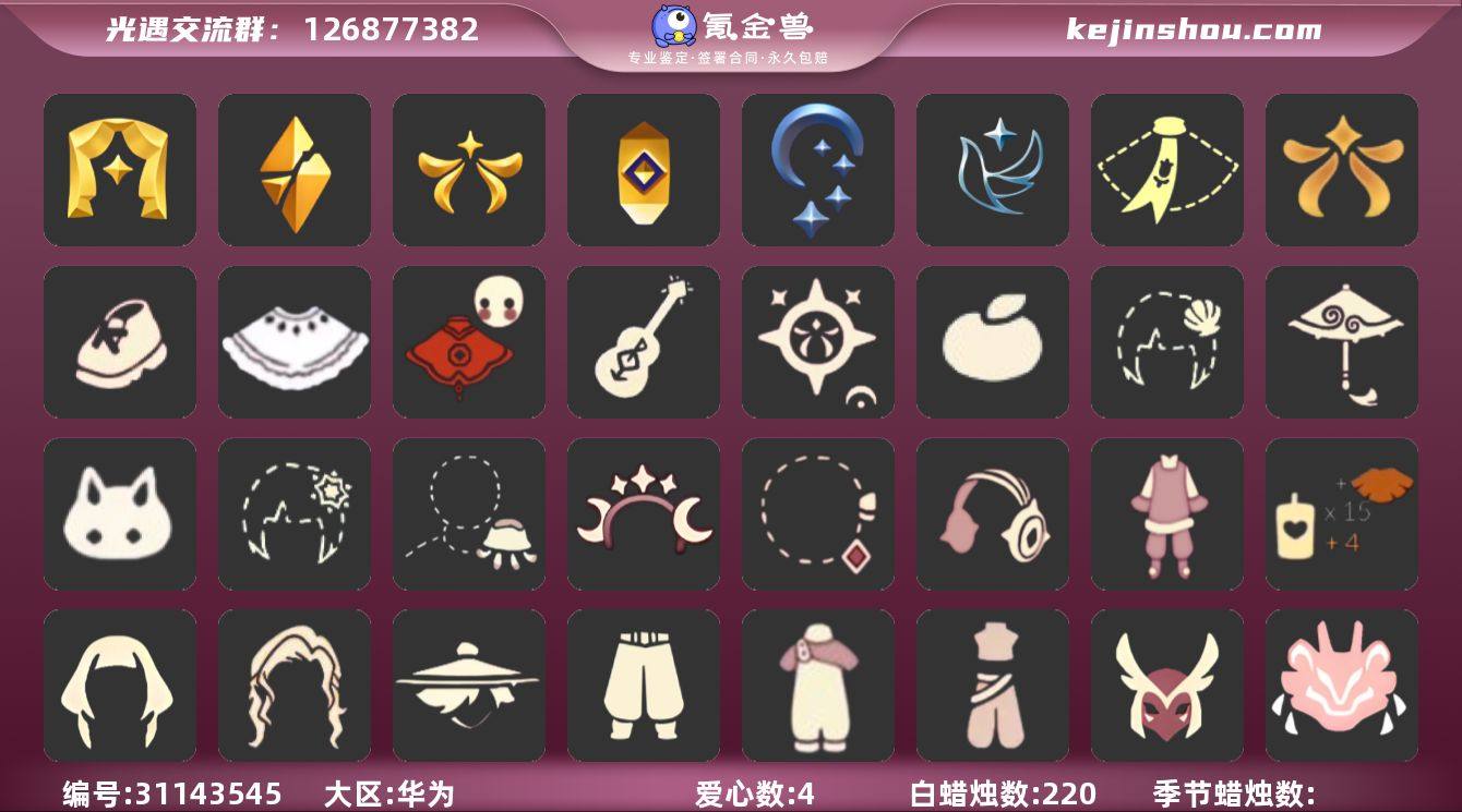 账号类型: 手机账号 季节已毕业: 表演季,破晓季,欧若拉季,夜行季,追忆季,青鸟季 完成地图: 霞谷 珍稀物品: 白枭,透明蝶翼斗 礼包: 围巾,欧若拉之翼,运动鞋,白绒金,福娃,吉他,人声乐器,橘子,贝壳,红伞,兔子,雪花,水母,星月头饰,彩虹耳钉,彩虹耳机,新年裤,创始人 裤子: 武士裤,背带裤,蓝绿裤 面具: 夜行毕业面具,黄眉企鹅面具 面饰: 红耳机,青鸟毕业面饰 项链: 围巾 发型: 若笠,虚荣,留辫蘑菇头 头饰: 平顶帽 斗篷: 海洋斗,绿芽,粉红绒毛斗篷,遥鲲斗篷,燕尾斗篷,冥龙斗篷,青鸟毕业斗篷 配饰: 雨伞,鲲灯 亮点: 【优质装备】:表演季,白枭(帝企鹅发),武士裤,破晓季,透明蝶翼斗,欧若拉季(欧若拉),夜行季,追忆季,蓝绿裤(高领舞服),围巾(肩带),夜行毕业面具(棕熊面具),黄眉企鹅面具,留辫蘑菇头,粉红绒毛斗篷(绒毛斗篷),遥鲲斗篷(双翼遥鲲斗),燕尾斗篷,冥龙斗篷,鲲灯(追忆之书),青鸟季,青鸟毕业面饰(青鸟面饰),青鸟毕业斗篷(青鸟斗篷),欧若拉之翼,福娃(福娃礼包)(春之日礼包)(铜钱斗),围巾(小王子斗篷)(小王子围巾),吉他(音韵吉他)(白吉他),人声乐器(欧若拉之声),白绒金(白雪斗篷),霞谷,若笠(箬笠),红耳机,红伞(瑞气纸伞),彩虹耳机,新年裤(瑞气服饰),运动鞋(跃动跑鞋),星月头饰(星月头冠),创始人(创始人斗篷),兔子(玉兔头饰)(玉兔发饰)(兔子发饰),水母(水母肩饰),彩虹耳钉(彩虹耳饰),雪花(雪花发夹),橘子(大橘大利),贝壳(贝壳发饰)
