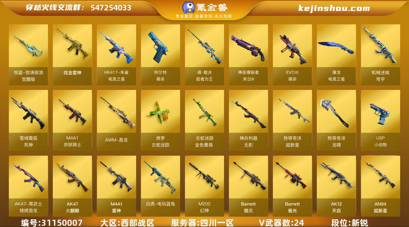 有幻神和皮肤有白虎电玩蓝兔有g36c幻影有金色蔷薇皮肤加音效卡