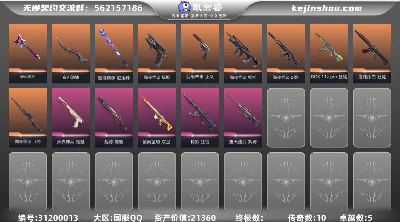 古神套装 显卡ak 钻石挂件 起源雄鹿 天界神兵鬼魅 掠夺ak 暗夜怪谈反手刀,西部正义 弃王大狙 紫金戍卫 混沌ak 账号上还有剩余r点 还有一些300点卷 可小刀 秒拍秒发