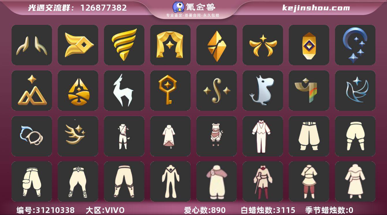 物品名字记不住 自行看截图吧 目前季节:全图+风行不断 (没出会继续肝季节和续季卡 本季季卡已充) 礼包:祥云裤 暗彩裤 树精肩饰 优雅领巾 姆明饰品 巫师 朋克 橘子 锦鲤 锦标桂冠 雪花 贝壳 兔子 大耳狗头饰 心相印 四叶草星月 神鹿鹿角 金鳞耳钉 彩虹耳机 日光耳环 满月耳坠 枯角 圣诞鹿角 TGC 创始人 围巾斗 欧若拉之翼 福娃套装 锦鲤套装 线框斗 蝙蝠斗 蜘蛛斗 皮皮猫斗 瑞雪斗 白雪斗 雪人斗 绊爱 白吉他 欧若拉之声 祥云伞 折扇 灯笼 夏日伞 飞鸟伞 秋千 花憩茶桌 小憩茶桌 南瓜 皮皮猫 水晶球 海螺 铁头 资源:3119/890/42 身高:2.4-14.4现3.7