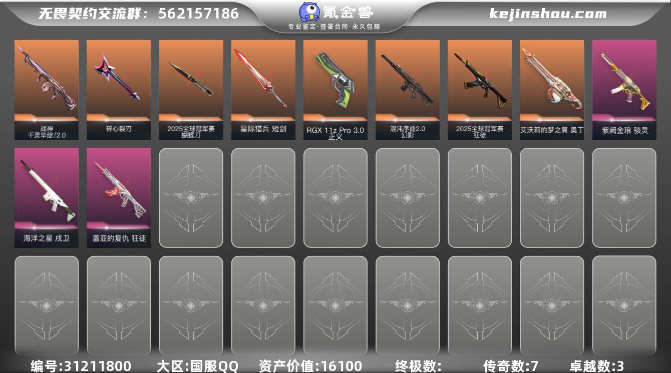 皮肤资产价值: 16100