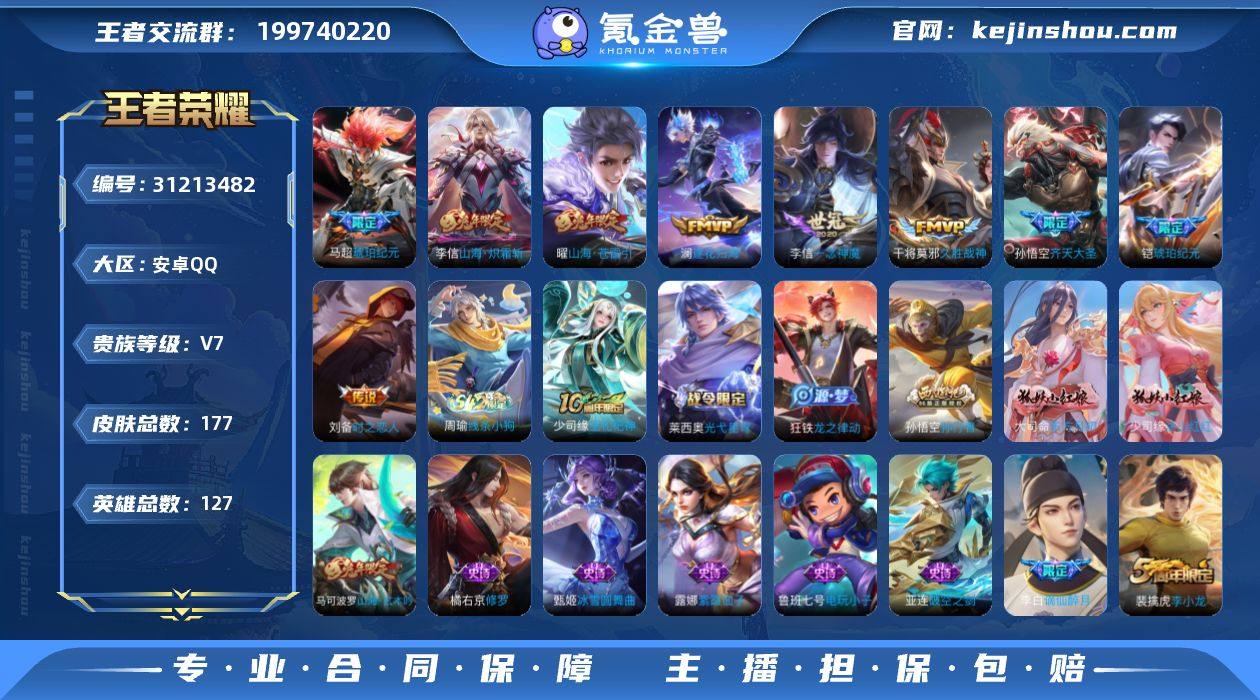 贵族等级:V7 典藏皮肤数:0 珍品无双皮肤数:0 无双皮肤数:0 珍品传说皮肤数:0 传说皮肤数:9 史诗皮肤数:58 皮肤数:177 英雄数:127 段位:钻石