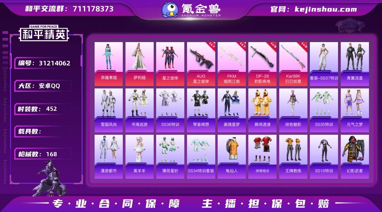热力值:49317 时装数:452 枪械数:168 战备数:127 游戏等级:61 卓越印记:0 传奇印记:0 绝世印记:0 异瞳寒姬,萨利娅,星之彼岸 七级AUG-星之彼岸,七级PKM-江南烟雨,五级DP-28-豹影疾电,五级Kar98K-巳巳如意 炫彩糖果降落伞,炫彩糖果飞行器,异瞳寒姬降落伞,星之彼岸飞行器,英伦信使飞行器,阿狸红降落伞,金丰海韵降落伞,精灵梦叶罗丽降落伞,江南烟雨降落伞,洛神天依降落伞,流星咚咚降落伞,时光之吻降落伞,樱桃泡泡降落伞,智趣喵喵降落伞,智耀战神降落伞 SS37特训,青翼流星,雪国风尚,画境星梦,琴音绮想,书海巡游,SS36特训,炫彩糖果,绯色魅影,萌鸡速递,SS35特训,元气之梦,漫游都市,美羊羊,薄荷星砂,SS34特训套装,暗黑骑手,缤纷果语,滨海假日,冰河战士,长空猛禽,潮流炫酷,蝶变,都市丽猫,都市魅力,飞驰魅影,绯格组合,福星高照,飞行日记,格斗先锋,龟仙人,光之冒险,虎虎生威吉莉,湖蓝色名流,黑色伏地魔,黄色伏地魔,黄色名流,海上生明月,黄色运动,红色运动,幻世战舞者,幻影武者,竞技名士,街头潮人,街头风暴,空岛之星,快乐星愿,狂沙舞者,空投萌叽,蓝色守护者,蓝色运动,恋语绒绒,冷焰舞者,猛禽,萌黄之夏,魅力单车,麻辣教官,萌趣颜团子,蜜桃派对,霓虹极客,霓虹街区,霓虹热舞,柠萌假日,牛气冲天,破蛋小黄鸡,破晓战魂,情公主,绮丽涂鸦,青团波波,云朵鹅,人气偶像,深蓝色名流,沙漠兵团,SS14特训,SS15特训,SS16特训,SS17特训,SS18特训,SS19特训,SS20特训,SS21特训,SS22特训,SS23特训,SS25特训,SS26特训,SS27特训,SS28特训,SS29特训,SS30特训套装,SS31特训套装,SS32特训套装,SS33特训套装,探宝勇士,甜蜜熊情侣,糖霜甜心,糖糖葫芦,特训学院,特种颜团子,特战装甲,完美偶像,王牌教练,顽皮玉兔,星梦畅游,雪绒豹,旭日情侣,夏日音浪,香桃花海,异彩先驱,耀粉歌者,音速流光,玉兔迎春,野性战心,鱼渊荷华,燕燕于飞 燃烧瓶-福马献瑞,ACE32-冰晶雪宝,PKM-啾咪啾咪,AA12-G-画境星梦,ACE32-画境星梦,M1加兰德-画境星梦,M762-登顶巅峰,MK12-乌木金纹,MP5K-画境星梦,平底锅-画境星梦,SCAR-L-绿洲时空,AUG-冰晶雪宝,铝热弹-炫彩糖果,UZI-炫彩糖果,撬棍-冰晶雪宝,AKM-霓彩脉冲,Famas-霓彩脉冲,SLR-霓彩脉冲,破片手榴弹-拽到爆炸,S12K-霓彩脉冲,AKM-涂鸦街区,AUG-紫晶流影,Mini14-鸡智如我,MG-36-薄荷星砂,P90-玩趣呆呆,AC-VAL-天降萌叽,AKM-彩虹符号,AKM-虎虎生威,AKM-龙的传人,AKM-萌趣颜团子,AKM-霓虹街区,AKM-破晓战魂,AKM-星之彼岸,AKM-夜灯,AKM-灼热熔岩,AUG-天降萌叽,AUG-耀粉歌者,大砍刀-云朵鹅,GROZA-彩虹符号,GROZA-异彩先驱,Kar98K-飞驰魅影,Kar98K-红色方程式,Kar98K-王子的夏天,M16A4-冰河战士,M16A4-红色方程式,M16A4-幻世战舞者,M16A4-蓝色火焰,M200-乌木金纹,M249-彩虹符号,M249-糯团青竹,M249-破晓战魂,M249-星之彼岸,M24-炫彩节奏,M24-樱桃泡泡,M416-红色方程式,M416-蓝色火焰,M416-糯团青竹,M416-夜灯,M417-玩趣呆呆,M762-绯红前夜,M762-天降萌叽,M762-云朵鹅,MG3-