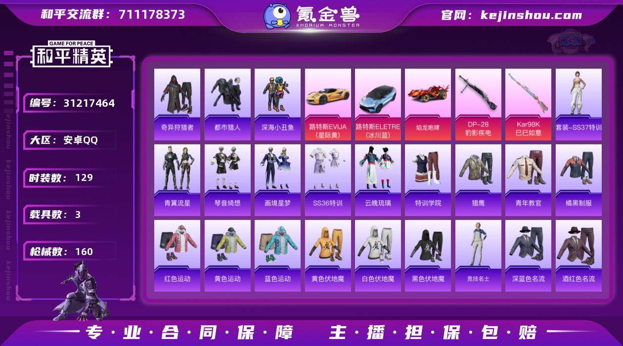 【3载具 2特效枪 0粉装 160枪皮 129套装】身法号 深海小丑鱼 小丑鱼 都市猎人 奇异狩猎者 路特斯EVIJA(星际黄),路特斯ELETRE(冰川蓝),焰龙咆哮 套装-都市猎人,套装-奇异狩猎者,套装-金耀舞者,套装-深海小丑鱼,套装-小丑鱼,套装-老实芭蕉 Kar98K-巳巳如意,DP-28-豹影疾电 马上有福飞行器,异域银装飞行器,编号:ZPEHL50