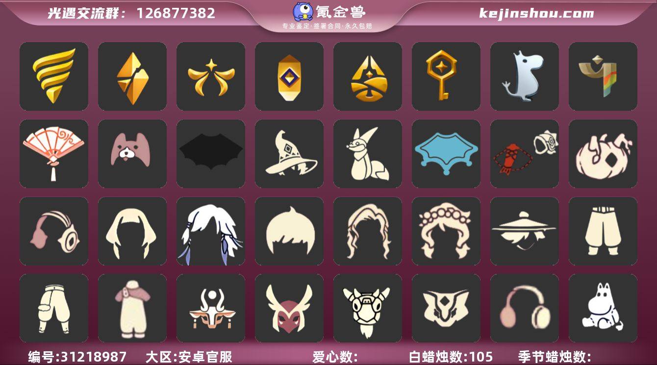 9季10翼透明蝶翼绊爱套装白枭神鹿头饰武士裤祥云纸伞搓澡巾白雪斗篷详情看图,价格可刀 资源:蜡烛29 爱心 36 红烛13 翼10 已毕业地图:全图毕业 毕业季节: 表演季 破晓季 欧若拉季 夜行季 九色鹿季 筑巢季 姆明季 追忆季半毕业 归巢季季卡 毕业季节物品: 燕尾斗篷 黄眉企鹅面具 白枭发型 双翼遥鲲斗篷 冥龙斗篷 留辨蘑菇头 高领舞服 透明蝶翼斗 棕熊面具 绒毛斗篷 九色鹿丸子头 九色鹿丝带裤 九色鹿飞天斗篷 设计师长袍 光之子试衣 姆明抱枕 姆明大伞 姆明长裙 稀有礼包:白雪斗篷 绊爱套装 祥云瑞气服饰 大桔大利 鲤跃龙门 玉兔头饰 星月头冠 九色鹿角 彩虹耳机 金鳞耳坠 圣诞鹿角 祥云纸伞 热门裤子:鳐鲲长裙 背带裤 绑带舞服 奔月长袍 妮妮长裙 搓澡巾 武士裤 紧身连体衣 小丑服 美工衣 祥云服饰 热门面具:矮人面具 黄鼠狼面具 黄眉面具 一字眉 棕熊面具 龙头 玫瑰花面具 黑脸 热门发型:海草头 爆炸头 大胡子 小飞象 雨妈 卡卡 平菇 龙骨 指甲盖 箬笠 蝴蝶结 公主头 粗辫 水母头 书虫 总裁 正太 高马尾 明制帽 郡主头 斗笠 虚荣 白枭 圆环发辫 留辫蘑菇头 李逍遥发型 兔子头 樱花头 马蹄莲发型 猫猫头 女巫发型 圣诞帽 绊爱发型 光头 热门头饰:花环 珊瑚 蓝色音乐会 红耳机 大桔大利 鲤跃龙门 玉兔头饰 星月头冠 神鹿头饰 彩虹耳机 金鳞耳坠 圣诞鹿角 热门斗篷:五角星斗篷 花瓣斗篷 红金斗篷 黑金斗篷 白金斗篷 蝴蝶斗篷 汉服斗篷 燕尾服斗篷 暗花斗篷 冥龙斗篷 鳐鲲长斗 展翼圆环斗篷 透明蝶翼 小浣熊斗篷 毛绒斗篷 彩霞斗篷 国风斗篷 灰色斗篷 姆明季斗篷 史力奇斗篷 樱花斗篷 郁金香斗篷 地球日斗篷 彩虹斗篷 白雪斗篷 绊爱斗篷 热门背饰:墨绿围巾 号角 冥龙号角...
