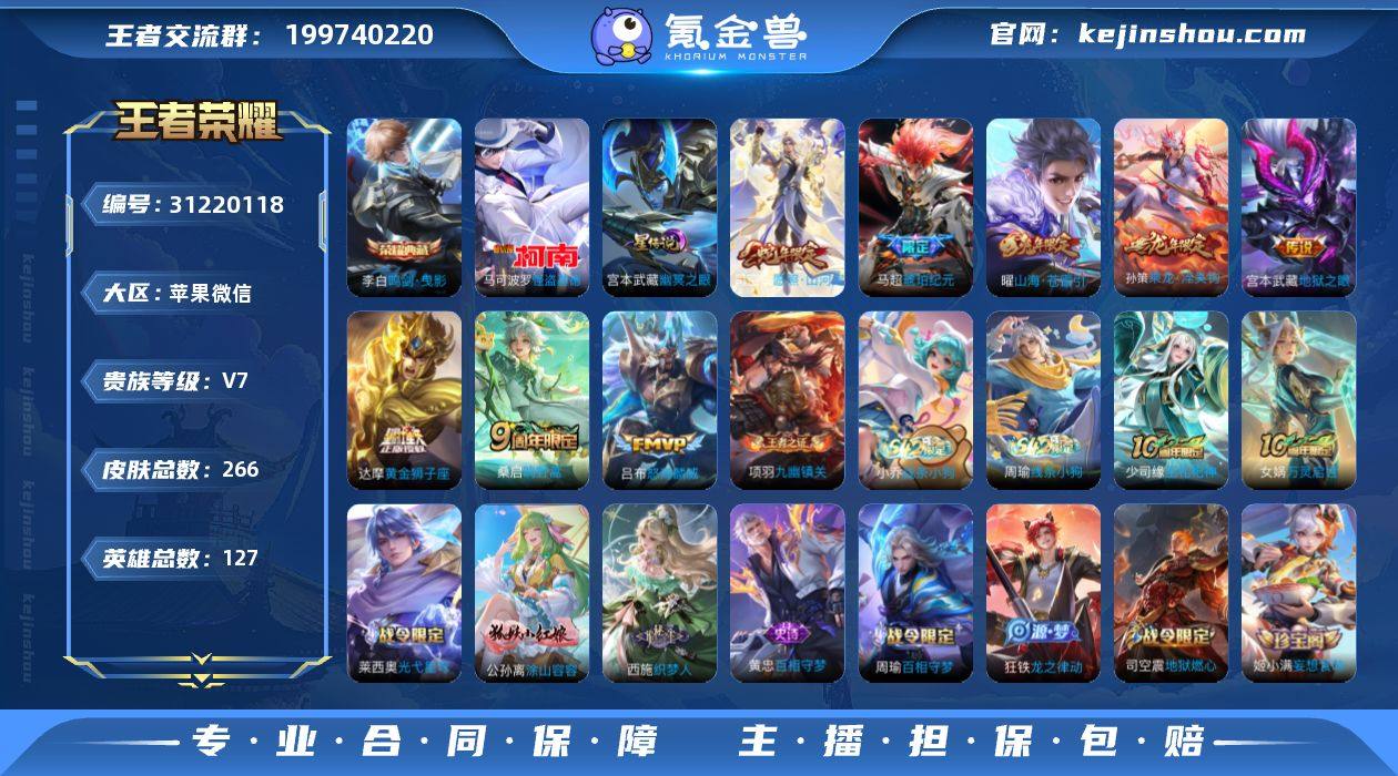 【对抗路81段 主页百星 历史小国标司空震1.4w战力 小国吕布·达摩·蒙恬 金标万战孙策 亚连 马可 狂铁 马超 曹操】V7-266皮肤-125英雄【珍品传说】 马可波罗-怪盗基德【典藏皮肤】 李白-鸣剑·曳影【传说皮肤】 马超-琥珀纪元 孙策-乘龙·淬吴钩 曜-山海·苍雷引 司空震-愿照·山河定 后羿-神树通天 吕布-怒海麟威 达摩-黄金狮子座 宫本武藏-地狱之眼 桑启-鸣野蒿【史诗皮肤】 小乔-线条小狗 西施-织梦人 少司缘-巫礼祀神 嫦娥-拒霜思 女娲-万灵启世 伽罗-琥珀纪元 上官婉儿-群星魔术团 盘古-敬我三分 鲁班七号-蔬乡物语 露娜-紫霞仙子 甄姬-冰雪圆舞曲 梦奇-顽趣 杨戬-天秀·启明 大乔-猫狗日记 阿轲-节奏热浪 白起-星夜王子 程咬金-功夫厨神 李元芳-逐浪之夏 刘禅-天才门将 蔡文姬-舞动绿茵 百里守约-特工魅影 亚瑟-心灵战警 蒙犽-百解令 兰陵王-暗隐猎兽者 小乔-缤纷独角兽 夏侯惇-乘风破浪 花木兰-水晶猎龙者 吕布-末日机甲 李白-千年之狐 曹操-幽灵船长 孙尚香-水果甜心 刘邦-德古拉伯爵 雅典娜-冰冠公主 沈梦溪-月团寄思 貂蝉-圣诞恋歌 宫本武藏-鬼剑武藏 廉颇-地狱岩魂 吕布-圣诞狂欢 墨子-金属风暴 嬴政-摇滚巨星 赵云-未来纪元 刘禅-电玩·爆裂旋风 云中君-纤云弄巧 狄仁杰-鹰眼统帅 杨玉环-遇见飞天 张飞-乱世虎臣 雅典娜-黎明之约 戈娅-驭风魔法 扁鹊-奇幻香踪 暃-星界游侠 狄仁杰-魔术师 赵云-皇家上将【稀有英雄】 嬴政 不知火舞 橘右京 夏洛特 娜可露露 韩信 艾琳 zm926 营地ID:1737180256