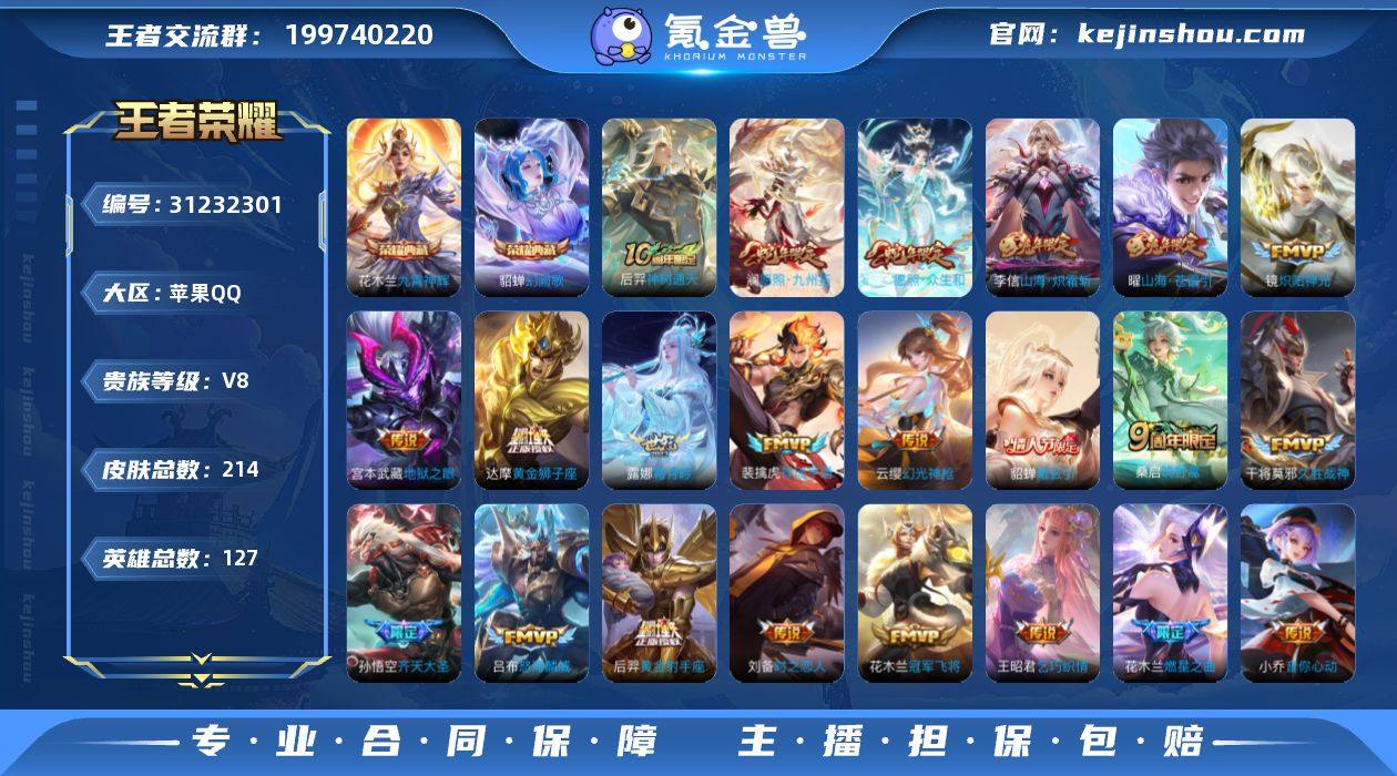 苹果Q-V8-最强王者段位-127英雄-214皮肤-2典藏皮肤-23传说-57史诗【英雄全皮】:孙权全皮【荣耀典藏】:花木兰九霄神辉,貂蝉幻阙歌【传说皮肤】:后羿神树通天,妲己愿照众生和,澜愿照九州拓,云缨幻光神枪,裴擒虎祥瑞亨通,桑启鸣野蒿,貂蝉曦玄引,露娜霜月吟,花木兰燃星之曲,孙悟空齐天大圣,曜山海苍雷引,李信山海炽霜斩,吕布怒海麟威,王昭君乞巧织情,小乔音你心动,镜炽阳神光,虞姬启明星使,刘备时之恋人,干将莫邪久胜战神,达摩黄金狮子座,花木兰冠军飞将,后羿黄金射手座,宫本武藏地狱之眼【限定皮肤】:姜子牙天穹之誓,狄仁杰阴阳师,赵云皇家上将,高渐离玩趣恶龙,钟无艳超时空战士,扁鹊奇幻香踪,吕布猎兽之王,甄姬落雪兰心,马可波罗山海玄木吟,狄仁杰魔术师,项羽海滩派对,关羽百相守梦,安琪拉魔法小厨娘,花木兰默契交锋,花木兰燃星之曲,孙悟空孙行者,孙悟空齐天大圣,刘备百相守梦,李元芳云中旅人,虞姬启明星使,杨戬潮玩骑兵,鬼谷子五谷丰年,百里玄策原初追逐者,裴擒虎擒涛扼浪,云中君纤云弄巧,李信山海炽霜斩,嫦娥暖冬兔眠,曜山海苍雷引,鲁班大师探海日志,桑启海盐诗旅,暃星界游侠,艾琳流音漫舞,司空震地狱燃心,张良古海寻踪,蒙恬荣光圣徽,高渐离燃音魔法,妲己灵卜魔法,鬼谷子天穹祈灯,伽罗琥珀纪元,姬小满妄想食味,貂蝉曦玄引,百里玄策超元猎域,沈梦溪龙舞盛年,鲁班七号蔬乡物语,李元芳蔬乡物语,刘邦剑破天穹,程咬金群星魔术团,刘备异域游侠,周瑜熔金海岸【年限皮肤】:曜山海苍雷引,李信山海炽霜斩,马可波罗山海玄木吟,妲己愿照众生和,澜愿照九州拓【赛季限定】:李元芳云中旅人,桑启海盐诗旅,裴擒虎擒涛扼浪,鲁班大师探海日志,张良古海寻踪,鬼谷子天穹祈灯,刘邦剑破天穹,姜子牙天穹之誓,东皇太一噬灭天穹,太乙真人谧流熔...