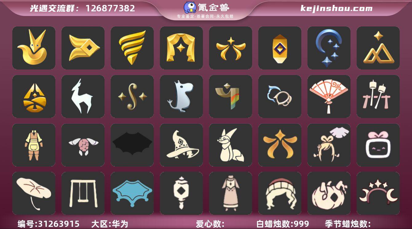 16季11翼透明蝶翼白枭武士裤搓澡巾蝙蝠斗星空斗篷玉兔拖鞋日光水母 资源:蜡烛 924 爱心 808 红烛 81 翼11 已毕业地图:雨林 霞谷 暮土 毕业季节:潜海季卡 表演季 破晓季 欧若拉季 追忆季 夜行季 拾光季 归巢季 九色鹿季 筑巢季 二重奏季 姆明季 彩染季 青鸟季 双星季 迁徙季卡 毕业物品:黄眉企鹅面具 燕尾斗篷 白枭发型 双翼遥鲲斗篷 冥龙斗篷 留辫蘑菇头 高领舞服 透明蝶翼斗 肩带 追忆之书 棕熊面具 绒毛斗篷 粗框眼镜 季卡相机 西部帽 五塑彩羽发 五塑彩带斗 九色鹿丸子头 九色鹿丝带裤 九色鹿飞天斗篷 设计师长袍 光之子试衣 合奏挂画 蓝色燕尾服 白色高脚钢琴 姆明大伞 姆明抱枕 姆明长裙 彩染围巾斗篷 辉光羚羊面具 青鸟面饰 青鸟斗篷 蓝色星星光环 暮星斗篷 稀有礼包:日光水母 向日葵连衣裙礼包 玉兔拖鞋 优雅领巾 姆明饰品 青衫落拓礼包 小狗周年头饰 贝壳发夹 玉兔头饰 大耳狗头饰 日光水母 粽子发饰 小黄鸭发饰 姆明饰品 蝴蝶与花 金鳞耳坠 九色鹿角 蝙蝠斗 蛛丝斗篷 线框斗篷礼包 青衫落拓 凯旋提琴 周年抱枕 献瑞折扇礼包 热门裤子:背带裤 遥鲲长裙 绑带舞服 墨绿长裤 奔月长裙 妮妮裙子 海浪阔腿裤 日光水母 连衣裙 玉兔拖鞋 白棉裤 搓澡巾 紧身连体衣 武士裤 小丑服 女仆围裙 美工衣 红色流珠裙 探险燕尾礼 米色西装裤 热门面具:矮人面具 狐狸面具 黄鼠狼面具 红兔面具 黄眉企鹅面具 一字眉面具 暗花面具 盲僧眼罩 棕熊面具 向导面具 青鸟面具 玫瑰花面具 黑脸 粽叶发带 鸟羽面饰 优雅领巾 姆明饰品 热门发型:爆炸头 海草头 雨妈 卡卡 平菇 龙骨 斗笠 蝴蝶结 公主头 粗辫 书虫 总裁 正太 高马尾 明制帽 郡主 箬笠 花环 虚荣 白枭 圆环发辫 留辫蘑菇头 兔子头 樱花 南瓜头 猫耳 女巫发型 青衫落拓发型 热门头饰:尖角牛仔帽 牛...