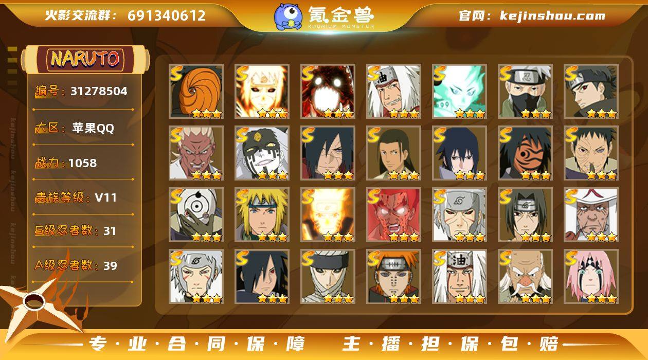 0B0LZ3 号,VIP11,战力:10587330,S忍者数量:33,A忍者数量:48,本服排名:249,战区排名:未上榜,通灵兽数量:20,时装数:14,段位:上忍2阶,忍者星数:556