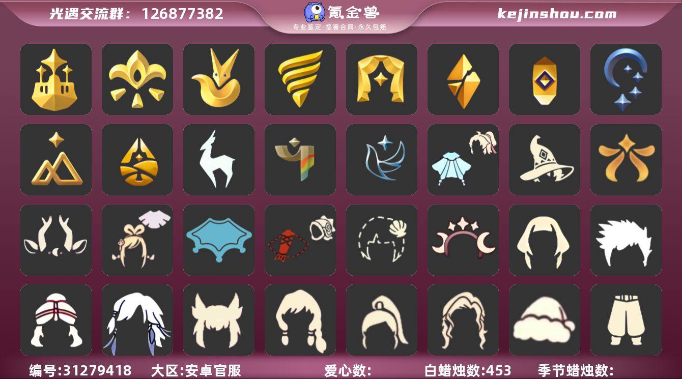 阿努比斯透明蝶翼玫瑰花圣诞鹿角白枭皮皮猫九色鹿角暖冬瑞雪详情看图,价格可刀 资源:蜡烛642 爱心92 红烛15 10 翼 已毕业地图:全图毕业 毕业季节: 圣岛季 预言季 梦想季 小王子季 潜海季 表演季 破晓季 欧若拉季 追忆季 夜行季 拾光季 九色鹿季 筑巢季 二重奏季 姆明季 彩染季 青鸟季 双星季 迁徙季季卡 稀有礼包:蝙蝠套 巫师帽 蛛网斗篷 透明蛛丝斗篷 暖冬瑞雪 新春福娃 青衫落拓斗 绊爱 圣诞鹿角 影院套餐 姆明饰品 悦动跑鞋 星月头冠 九色鹿角 彩虹耳钉 彩虹耳机 橘子头饰 珊瑚发饰 小狗头饰 雪花发夹 贝壳发夹 玉兔头饰 海洋发型 凯旋提琴 献瑞折扇 皮皮猫 水晶球 热门裤子:背带裤 鳐鲲长裙 绑带舞服 奔月长袍 妮妮长裙 海洋武士裤 白棉裤 搓澡巾 紧身连体衣 武士裤 小王子服 小丑服 女仆围裙 美工衣 暗彩武士裤 米色西装裤 热门面具:矮人面具 黄鼠狼面具 狐狸面具 阿努比斯 红兔面具 凤凰面具 潜海面具 黄眉面具 一字眉 棕熊面积 盲僧眼罩 向导面具 红脸蛋 龙头 玫瑰花面具 青鸟面具 玫瑰面具 黑脸 粽叶面具 鸟语面具 热门发型:海草头 爆炸头 大胡子 小飞象 雨妈 卡卡 平菇 龙骨 指甲盖 箬笠 蝴蝶结 公主头 水母头 粗辫 书虫 总裁 正太头 高马尾 明制帽 郡主头 斗笠 绿丝带 虚荣 小王子头 白枭 圆环发辫 留辫蘑菇头 李逍遥发型 兔子头 春丽丸子头 樱花头 马蹄莲发型 海洋发型 鳐鲲发型 大耳狗发型 南瓜头 巫师帽 猫猫头 女巫发型 圣诞帽 光头 青衫落拓发型 热门头饰:粗框眼镜 牛仔帽 尖叫牛仔帽 双星季头饰 橘子头饰 珊瑚发饰 小狗头饰 雪花发夹 贝壳发夹 玉兔头饰 蓝色音乐会 心心相印 四叶草 红耳机 星月头冠 九色鹿角 探...