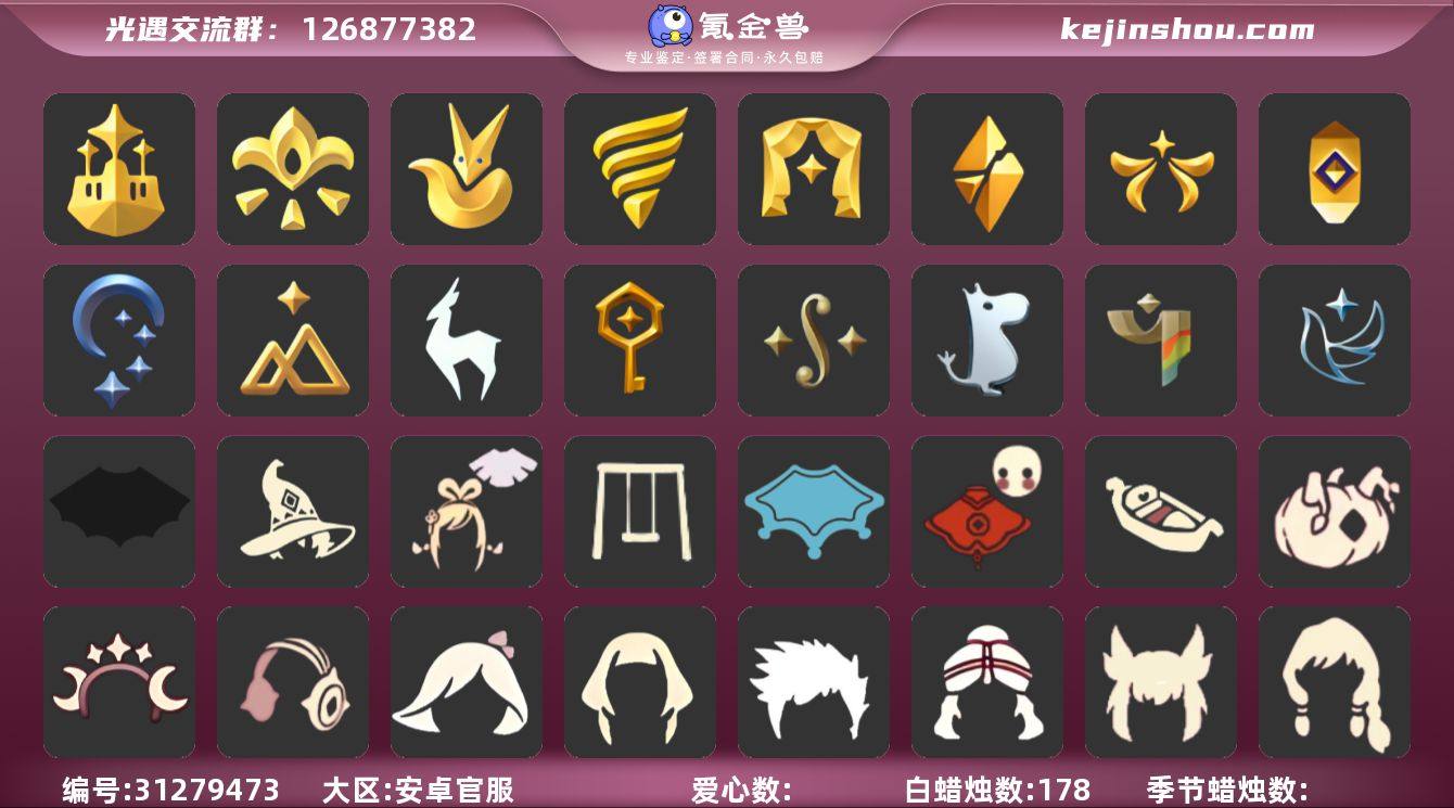 狗头星球夹克常驻线框斗篷白枭玫瑰花蝙蝠套装巫师帽绊爱套装资源:蜡烛661 爱心446 红烛10 翼12 已毕业地图:晨岛 云野 雨林 霞谷 暮土 禁阁 毕业季节:圣岛季 预言季 梦想季 集结季 小王子季 风行季 潜海季 表演季 破晓季 欧若拉季 追忆季 夜行季 拾光季 归巢季 九色鹿季 筑巢季 二重奏季 青鸟季 双星季 迁徙季卡 稀有礼包:连衣裙 玉兔拖鞋 暗彩装扮 新春福娃 活力海牛 南瓜头 巫师帽 绊爱 青衫落拓 彩虹帽 橘子发饰 鲤鱼发饰 小狗发饰 雪花发卡 贝壳发卡 玉兔发饰 粽子发饰 小黄鸭发饰 星月头冠 金鳞耳坠 彩虹耳钉 彩虹耳机 满月耳环 巫树犄角 圣诞鹿角 小王子围巾 星球夹克 常驻线框斗篷 蝙蝠斗篷 蛛网斗篷 暖冬瑞雪 白雪斗篷 冥龙号角 欧若拉之声 秋千 花憩茶桌 玫瑰花 狐狸背包 雪花水晶球 2周年抱枕 大铁头 热门裤子:背带裤 遥鲲长裙 绑带舞服 墨绿长裤 奔月长裙 海浪阔腿裤 连衣裙 玉兔拖鞋 暗彩装扮 白棉裤 搓澡巾 紧身连体衣 武士裤 王子服 羽袖长袍 小丑服 女仆围裙 美工衣 流珠红色连 探险燕尾礼 米色西装裤 热门面具:矮人面具 狐狸面具 黄鼠狼面具 阿努比斯 兔头 凤凰面具 集结面具 潜海面具 黄眉面具 一字眉 棕熊面具 盲僧眼罩 青鸟面具 红脸蛋 龙头 玫瑰花面具 黑脸 粽叶发带 黑框眼镜 鸟羽面饰 热门发型:海草头 爆炸头 大胡子 小飞象 雨妈 卡卡 平菇 龙骨 指甲盖 斗笠 蝴蝶结 公主头 粗辫 水母头 书虫 总裁头 正太头 高马尾 明制帽 郡主头 箬笠 锅盖头 绿丝带 虚荣 小王子发型 白枭 圆环发辫 留辫蘑菇头 李逍遥发型 彩色脏辫 彩羽发型 兔子头 春丽丸子头 樱花头 猫耳 女巫发型 圣诞帽 光头 南瓜头 巫师帽 绊爱 青衫落拓 彩虹帽 热门头饰:尖角牛仔帽 牛仔帽 毕业羽毛 鸟羽发饰 双星发饰 花环 珊瑚发饰 蓝色音乐节 晃悠悠 红耳机 单边发饰 探险耳机 橘子发饰 鲤鱼发饰 小狗发饰 雪花发卡 贝壳发...
