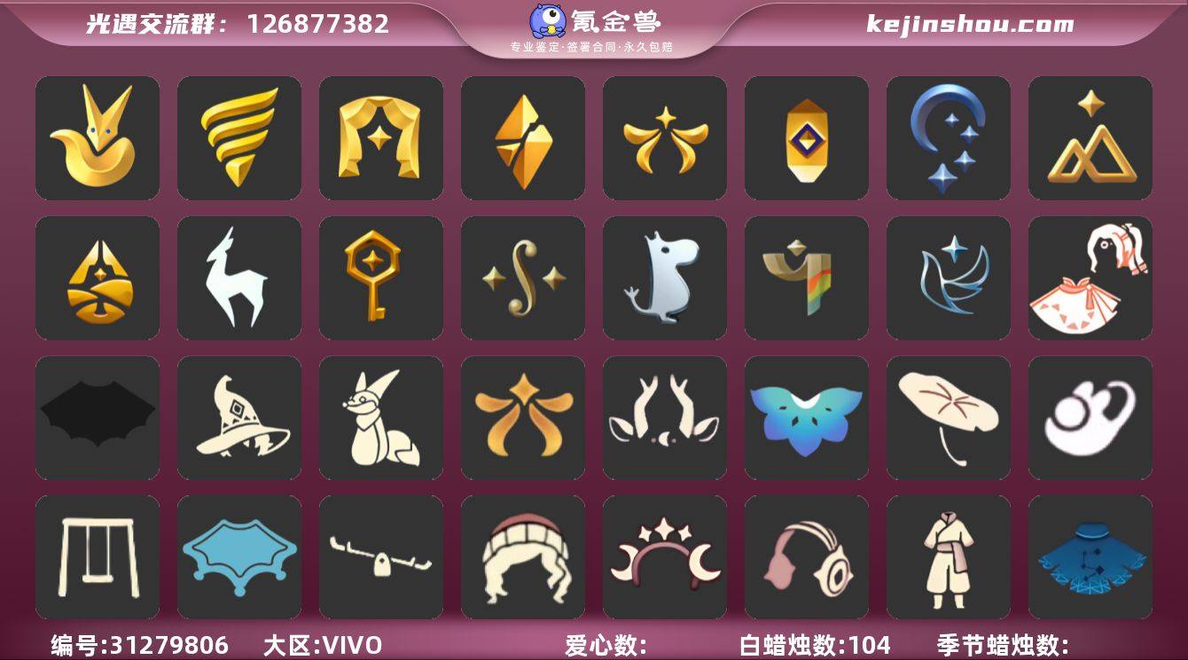 账号类型: 手机账号 季节已毕业: 魔法季,圣岛季,小王子季,表演季,破晓季,欧若拉季,集结季,九色鹿季,二重奏季,双星季,迁徙季 完成地图: 晨岛,云野,雨林,霞谷,暮土,禁阁 珍稀物品: 鳐鲲斗篷,白枭,透明蝶翼斗,魔法季耳坠,玫瑰花 礼包: 蝙蝠套,巫师,围巾,小狐狸,绊爱,兔子鞋,茶桌,跷跷板,橘子,贝壳,兔子,星月头饰,彩虹耳钉,暗彩装扮,新年耳钉,创始人,姆明饰品套装,小狗周年发饰,青衫落拓礼包,活力海牛礼包 裤子: 武士裤,背带裤,搓澡巾,击剑裤,王子服,蓝绿裤 面具: 黄眉企鹅面具 面饰: 红耳机 发型: 若笠,虚荣,小王子发型,留辫蘑菇头,飞天盘发 头饰: 行军锅头盔,蓝色音乐会,平顶帽 斗篷: 海洋斗,绿芽,遥鲲斗篷,黄色连帽披风,燕尾斗篷,冥龙斗篷 配饰: 高音钢琴,玫瑰花,蓝色手碟 亮点: 【优质装备】:魔法季,魔法季耳坠(双边耳坠)(魔法耳坠),表演季,白枭(帝企鹅发),武士裤,圣岛季,小王子季(王子季),破晓季,鳐鲲斗篷,透明蝶翼斗,欧若拉季(欧若拉),行军锅头盔(六边锅帽子)(双耳锅帽子),高音钢琴(白色高脚钢琴),集结季,玫瑰花,九色鹿(九色鹿季),王子服(小王子套装),蓝绿裤(高领舞服),二重奏季,黄眉企鹅面具,小王子发型,留辫蘑菇头,遥鲲斗篷(双翼遥鲲斗),黄色连帽披风(连帽斗篷)(斜边队长斗篷),燕尾斗篷,冥龙斗篷,蓝色手碟(毕业手碟),飞天盘发(九色鹿丸子头),双星季,蝙蝠套(蝙蝠斗篷)(南瓜头),绊爱(绊爱斗篷)(绊爱礼包),茶桌(花憩茶桌),跷跷板(情人跷跷板),红耳机,围巾(小王子斗篷)(小王子围巾),暗彩装扮(彩虹武士裤),姆明饰品套装(姆明尾巴),巫师(巫师帽),小狐狸(狐狸背包),活力海牛礼包,晨岛,云野,雨林,霞谷,墓土(暮土),禁阁,若笠(箬笠),兔子鞋(兔子拖鞋),星月头饰(星月头冠),创始人(创始人斗篷),小狗周年发饰(小狗周年头饰),青衫落拓礼包,兔子(玉兔头饰)(玉兔发饰)(兔子发饰),彩虹耳钉(彩虹耳饰),新年耳钉(金鳞耳饰),橘子(...