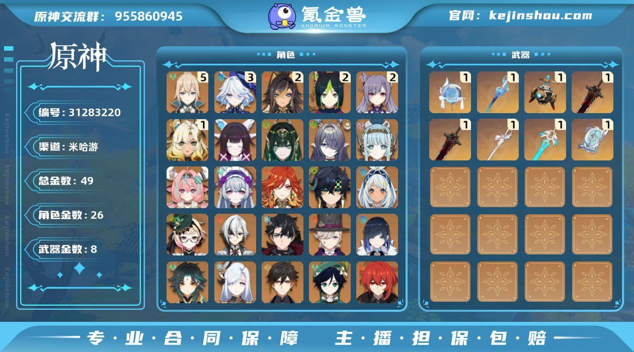 【官服/渠道服】原神账号 【58/60】级 多官服原神账号 60级 46金 8专武高练度 可换绑 安全出售