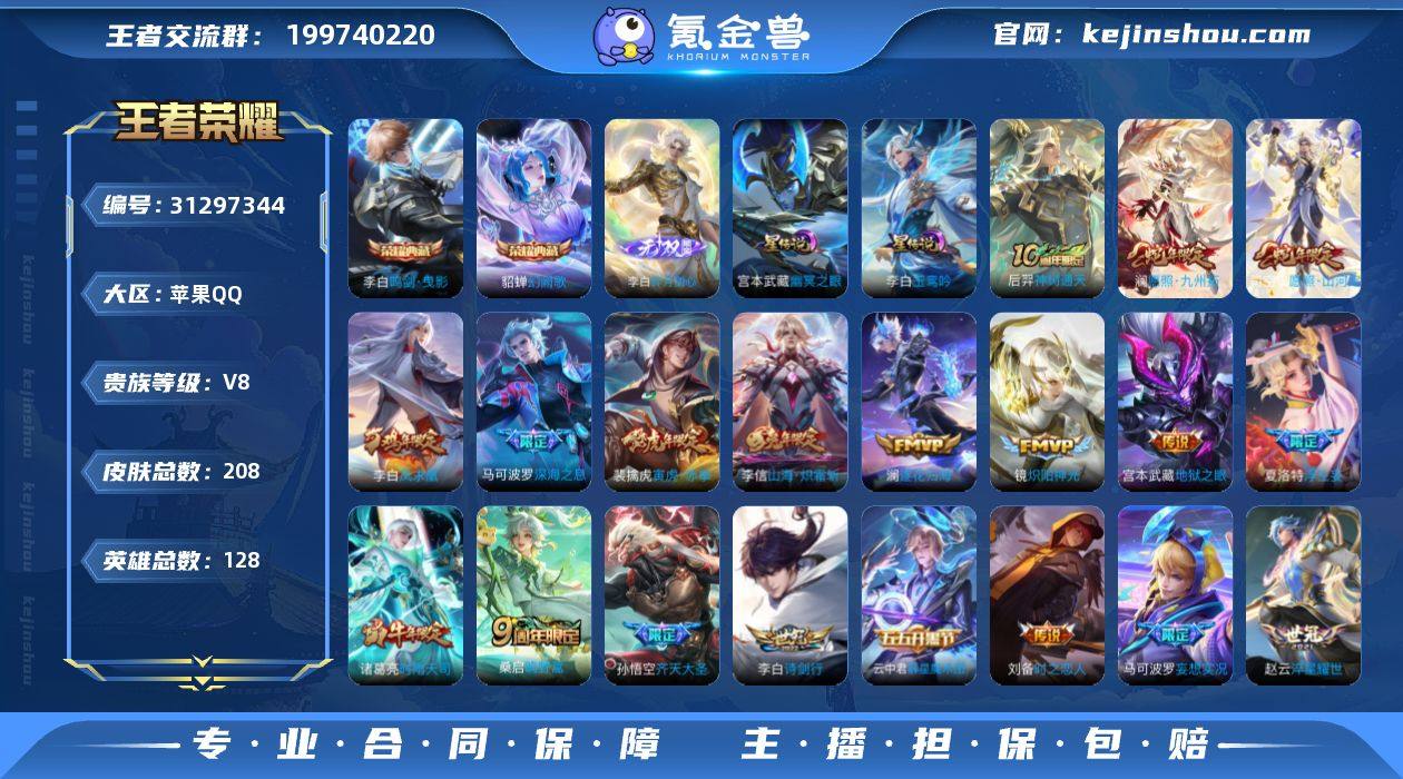 贵族等级:V8 典藏皮肤数:2 珍品无双皮肤数:0 无双皮肤数:1 珍品传说皮肤数:0 传说皮肤数:21 史诗皮肤数:64 皮肤数:208 英雄数:128 段位:王者 卖家说:打野号两个荣耀典藏