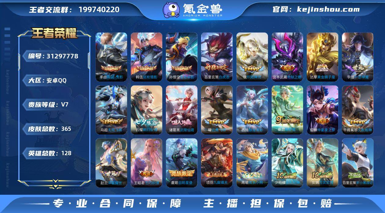 安卓手Q315区365皮3典藏17传说0无双 营地ID1590331475(可二次)V7最强王者 【荣耀典藏】:弑枪猎影,鸣剑·曳影,全息碎影【优质限定皮肤】:无双飞将,神威,白虎志,至尊宝【传说皮肤】:神树通天,地狱之眼,鸣野蒿,鹤归松栖,无双飞将,武陵仙君,黄金狮子座,淬星耀世,仲夏夜之梦,乞巧织情,启明星使,游龙清影,炽阳神光,久胜战神,白虎志,云鹰飞将,一念神魔【特殊英雄】:嬴政,敖隐,【史诗皮肤】:九幽镇关,罗小黑战记,巫礼祀神,万物之道,万灵启世,涂山容容,灵蛊蚀心,百相守梦,石田雨龙,乐园奇幻夜,器灵·浮梦炉,星界战将,诗语江南,遇见飞天,暗夜贵公子,摇滚巨星,破空之剑,猫狗日记,绅士熊喵,无限星赏官,冰雪圆舞曲,箭羽风息,妄想食味,幽灵船长,荣光圣徽,乱世虎臣,江河有灵,鹤归松栖,驭风魔法,电玩·爆裂旋风,山海·玄木吟,末日机甲,天才门将,顽趣,无心,五谷丰年,舞动绿茵,超时空战士,暗夜猫娘,天狼狩猎者,曙光守护者,电玩高手,未来纪元,圣诞狂欢,吟游魔法,玉兔公主,永昼,心灵骇客,火炮绅士,鬼剑武藏,星夜王子,地狱岩魂,黎明之约,拒霜思,暗隐猎兽者,高山流水,朱雀志,真爱魔法,暗渊魔法,神威,节奏热浪,游园惊梦,遇见神鹿,金属风暴,孙行者,时之奇旅,水晶猎龙者,乘风破浪,缤纷独角兽,猫狗日记,优雅恋人,蜜橘之夏,逐梦之影,航海奇遇记,圣诞恋歌,天狼溯光者,女仆咖啡,电玩小子,魅语,原初追逐者,胡桃异想国,紫霞仙子,逐浪之夏,冰锋战神,时之恋人,心灵战警,晚萤,偶像