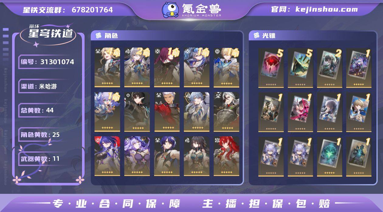 总黄数:44 五星光锥数:11 五星角色数:25 开拓等级:70 开拓者性别:男 星轨专票:1 星琼数量:157 4命彦卿,2命布洛妮娅,1命卡芙卡,1命银狼,1命杰帕德,1命白露,0命丹恒·腾荒,0命Archer,0命星期日,0命波提欧,0命黄泉,0命黑天鹅,0命真理医生,0命阮·梅,0命银枝,0命托帕&账账,0命镜流,0命丹恒·饮月,0命刃,0命罗刹,0命景元,0命希儿,0命姬子,0命瓦尔特,0命克拉拉 5精记一位星神的陨落,5精星海巡航,2精比阳光更明亮的,1精重塑时光之忆,1精拂晓之前,1精以世界之名,1精但战斗还未结束,1精制胜的瞬间,1精时节不居,1精不息的演算,1精孤独的疗愈 换绑材料:可提供换绑材料 邮箱状态:未绑定 psn绑定情况:否 taptap绑定情况:否