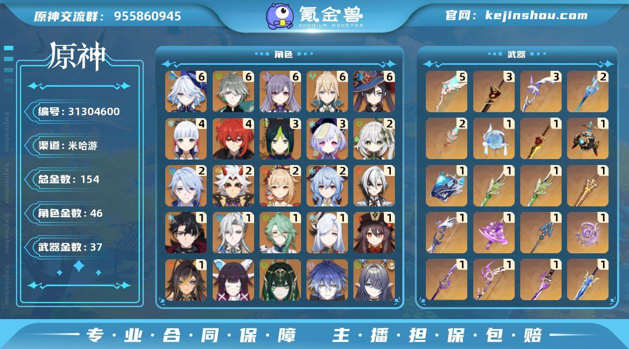 邮箱已注销,多个完整配对,多样五星武器,满命芙,满命海森,高练度,月卡四十多天