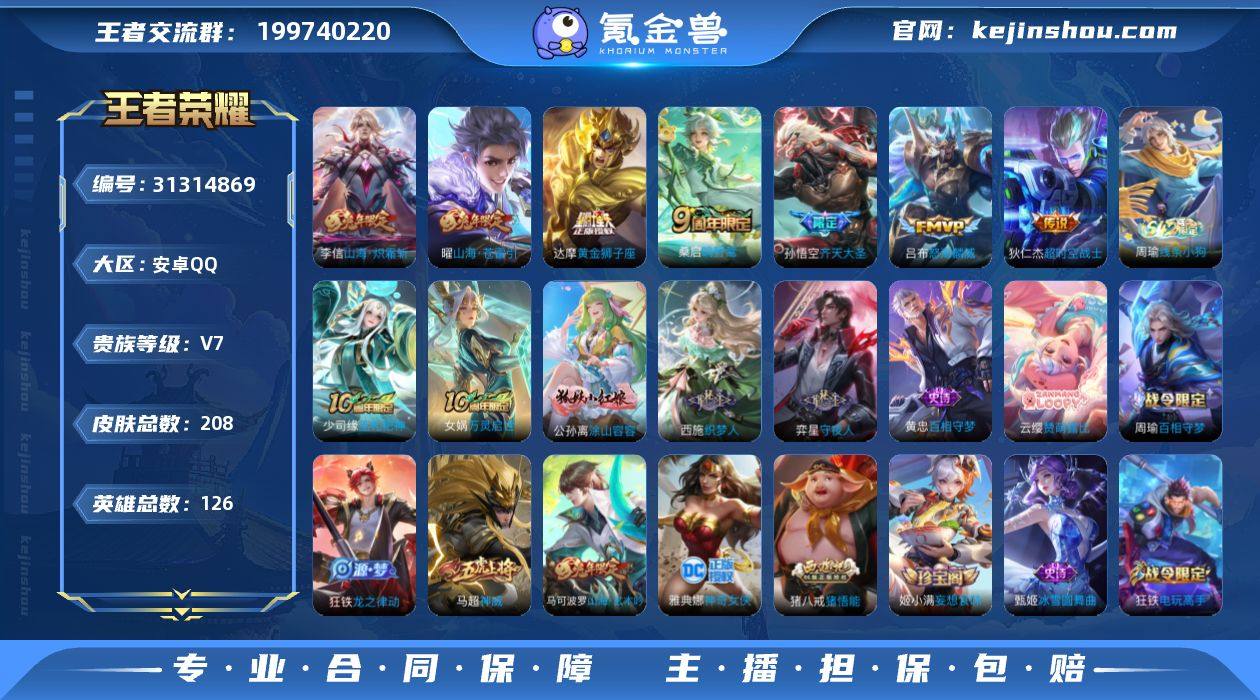 安卓Q 可二次 7传说126英雄208皮肤 鸣野蒿 山海苍雷引 山海炽霜斩 齐天大圣 怒海麟威 黄金狮子座 超时空战士男 万灵启世 巫礼祀神 涂山容容 守夜人 神威 山海玄木吟 神奇女侠 拒霜思 匿光决锋者 降魔 猪悟能 梁祝 织梦人 赞萌露比 黄忠百相守梦 燃音魔法 百解令 关羽百相守梦 匿光破解者 电玩爆裂旋风 雪上飞焰 梦圆繁星 原初探秘者 李小龙 水晶猎龙者 猫狗日记男 猫狗日记女 金属风暴 特工魅影 特工战影 蔷薇恋人 妄想食味 逐浪之夏 千年之狐 功夫厨神 圣诞恋歌 幽灵船长 乘风破浪 圣诞狂欢 星夜王子 节奏热浪 街头霸王 摇滚巨星 鬼剑武藏 冰雪圆舞曲 王者荣耀账号