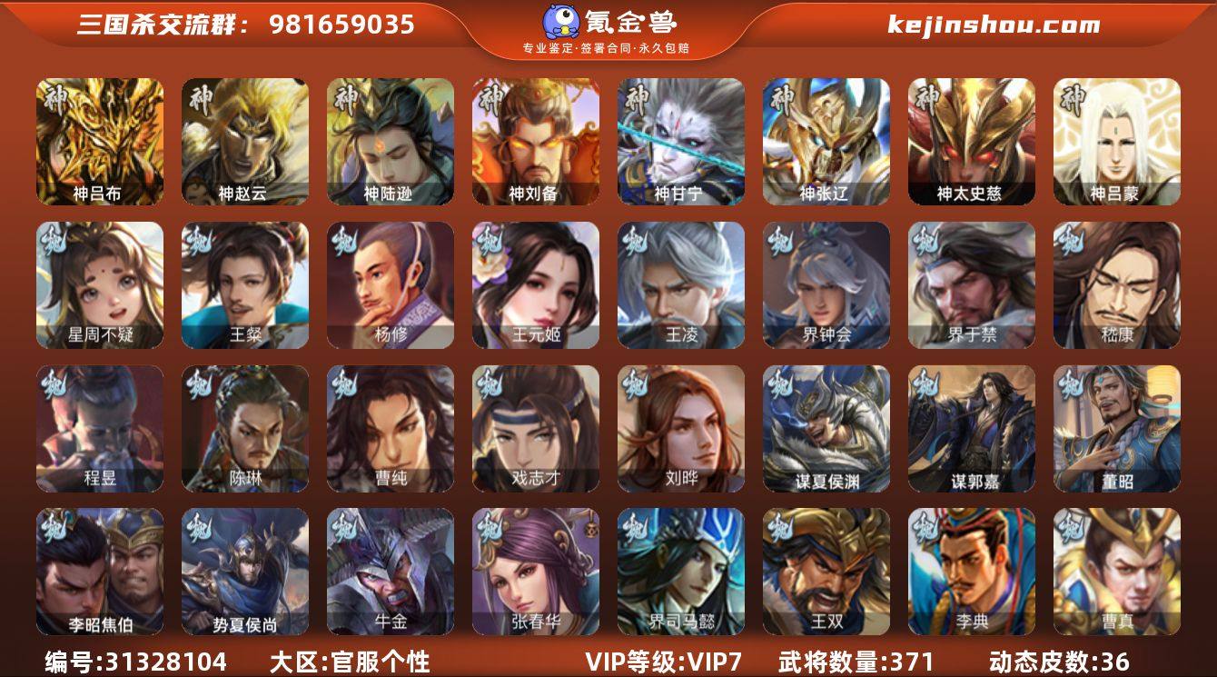 VIP等级:VIP7 官阶:大将军 史诗武将数量:47 动态皮肤数量:36 宝珠数量:1 元宝数量:1548 将魂数量:776 卖家说:账号都地主金票四十多万