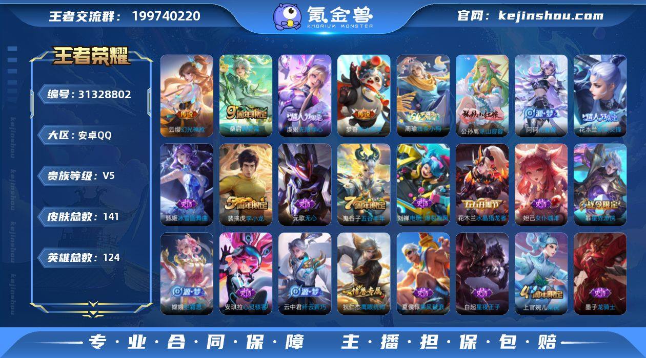 【XY461】贵族5/皮肤141/传说4/史诗41/英雄124/孙权全皮/影全皮/幻光神枪/鸣野蒿/无限倾心-虞姬/胖达荣荣/天穹之誓(s36)/阴阳师/皇家上将/王者之锤/无心/游园惊梦/万华元夜(s22)/沙漠行僧(s26)/海滩派对/醍醐杖(s20)/金庭之子(s27)/默契交锋-花木兰/云中旅人(s29)/驱傩正仪(s24)/胡桃夹子/原初探秘者(s21)/五谷丰年/千军破阵(s25)/原初追遂者/大漠名商(s28)/李小龙/擒涛扼浪(s31)/纤云弄巧/梁祝/拒霜思/暖冬·兔眠/探海日志(s32)/海盐诗旅(s30)/星界游侠/女武神/江河有灵/古海寻踪(s33)/百解令(蒙犽)/蒙恬荣光圣徽/鬼谷子天穹祈灯(S34)/龙武盛年/剑破天穹(s35)/程咬金群星魔术团/噬灭天穹(s37)/谧流熔炉/线条小狗-周瑜/苍穹之光/未来纪元-赵云/圣诞恋歌/冰雪圆舞曲/偶像歌手/鬼剑武藏/水果甜心/魅力维加斯/女仆咖啡/龙骑士/金属风暴/乱世虎臣/水晶猎龙者/乘风破浪/缤纷独角兽/暗隐猎兽者/心灵战警/冰冠公主/心灵骇客/天才门将/星夜王子/节奏热浪/鹰眼统帅/电玩·爆裂旋风/化蝶舞/涂山容容/教廷特使/街头霸王/白执事/忍·炎影/白色死神/化身博士/未来纪元-宫本武藏/玩偶对对碰/天使之翼/少女阿狸/死亡骑士/拳王/兔女郎/五福同心/花好人间/万事如意/万象初新/阿尔法小队/海滩丽影/掌控之力/幻乐之宴/守护之力/虹云星官/野性能量/归虚梦演-蒙犽/炽热元素使/圆桌骑士(盾山)/特工战影/瓷语鉴心/乓乓大师/唤灵魔甲/契约魔法/蔚蓝守将/危途狂花/幻泉雾影-海月/太极少年/劲辣红锅/西部游侠/妄想特派/完美运算/时空谍影/漠中幻影/朵莉亚金色潮汐/春野之旅/苍林狼骑/铁骨偃魂/魅影绮裳/雪境奇遇-西施/星梦巡礼/径山谋武/溯影追猎/异域舞娘/精灵公主/万圣前夜/未来旅行/范海辛/圣殿之光/加勒比小姐/蔷薇王座/东海龙王/阿摩司公爵/花间舞/踏雪寻梅/露花倒影/森/归虚梦演-西施/孤猎/启蛰/赤焰之缨/画中游