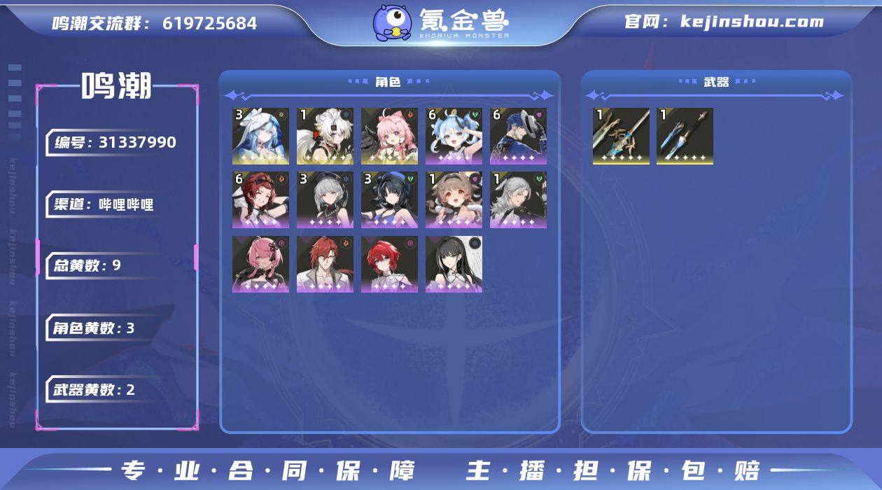 未实名只有账密,自行实名登录绑定自己手机号就好 大欧号,31守岸人两次双金,卡池垫了30攒了1w星声,角色65抽武器31抽常驻28抽,地图只肝了部分今州和黎娜西塔,还剩至少4成,加上新图,保底可肝200抽以上,3.1版本活动全在签到5抽也没拿,声骸养成资源也很多,喜欢守岸人或者欧号屯星声抽小爱的可入,工作没时间了小号全出了