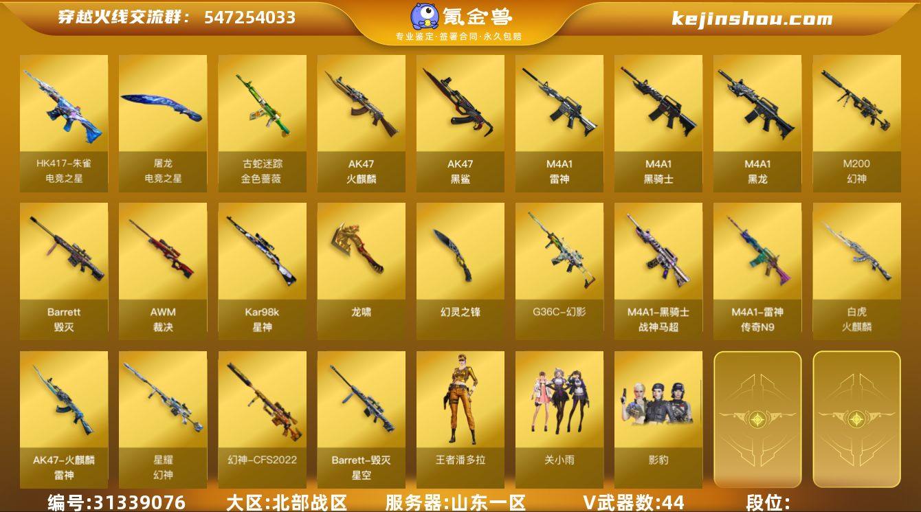 北部战区44v幻神/幻影/星神/挑战9阶段/幻神带双皮/星神/擎天柱*爆破号可以排位山东一区M200-幻神,Kar98k-星神,G36C-幻影,幻灵之锋,金色蔷薇-古蛇迷踪,擎天柱,AK47-火麒麟,AK47-黑鲨,M4A1-雷神,M4A1-黑骑士,M4A1-黑龙,Barrett-毁灭,AWM-裁决,龙啸,集束激光-超越,HK417-朱雀-电竞之星,屠龙-电竞之星,腐蚀激光-超越M200-幻神,Kar98k-星神,G36C-幻影,幻灵之锋,金色蔷薇-古蛇迷踪,擎天柱,AK47-火麒麟,AK47-黑鲨,M4A1-雷神,M4A1-黑骑士,M4A1-黑龙,Barrett-毁灭,AWM-裁决,龙啸,集束激光-超越,HK417-朱雀-电竞之星,屠龙-电竞之星,腐蚀激光-超越臻选套装臻选套装斯泰尔-幻面灵狐,天龙-乔伊教练,HK417-朱雀-蛇隐宗,M82A1-水枪-不败狙神斯泰尔-幻面灵狐,天龙-乔伊教练,HK417-朱雀-蛇隐宗,M82A1-水枪-不败狙神王者潘多拉,关小雨,影豹,蛇隐宗王者潘多拉,关小雨,影豹,蛇隐宗星神音效卡星神音效卡火麒麟-雷神,火麒麟-白虎,雷神-传奇N9,毁灭-星空,黑骑士-战神马超,幻神-CFS2022,幻神-星耀皮肤火麒麟-雷神,火麒麟-白虎,雷神-传奇N9,毁灭-星空,黑骑士-战神马超,幻神-CFS2022,幻神-星耀皮肤