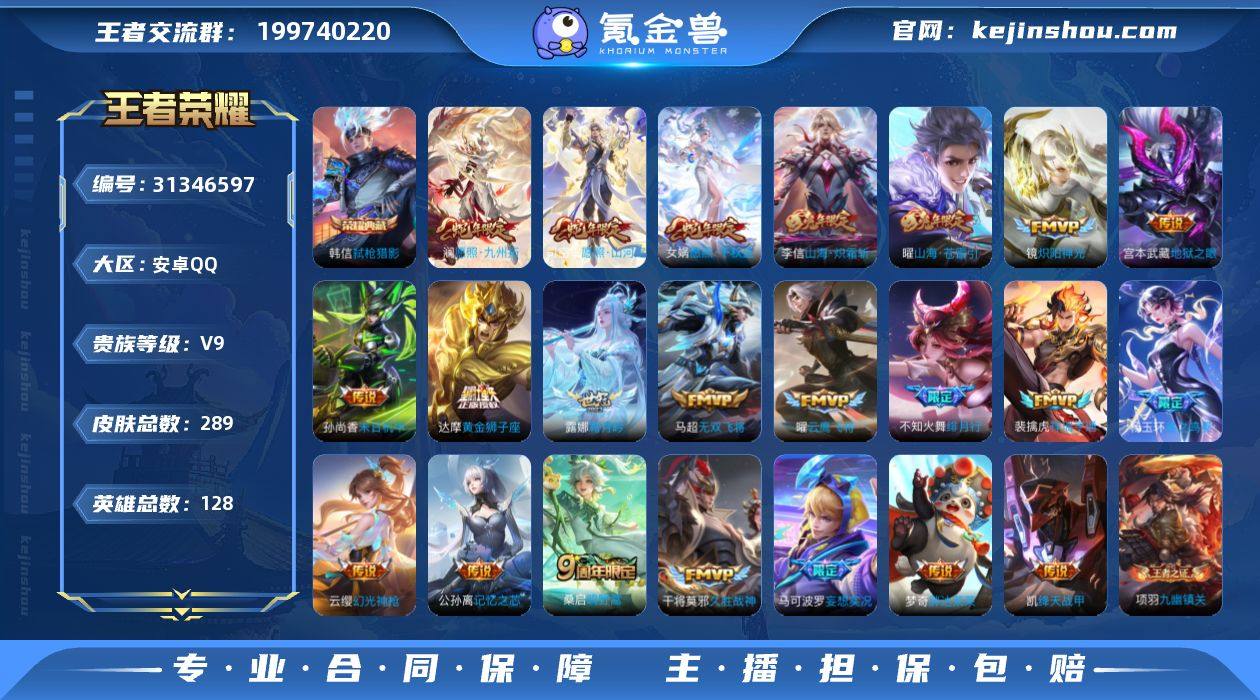 【V9 1典藏 23传说 289皮肤 128英雄】可二次 14印记 打野41 露娜银标8442 弑枪猎影 神奇女侠 至尊宝 云鹰飞将 山海·苍雷引 山海·炽霜斩 记忆之芯 胖达荣荣 飞衡 傲雪梅枪 炽阳神光 久胜战神 无双飞将 妄想实况 绯月行 末日机甲(孙尚香) 地狱之眼 黄金狮子座 启明星使 霜月吟 绛天战甲 祥瑞亨通 星之鸣奏 愿照·千秋盛 愿照·山河定 愿照·九州拓 5-14 p8-19 b68-1,编号:KXESN53