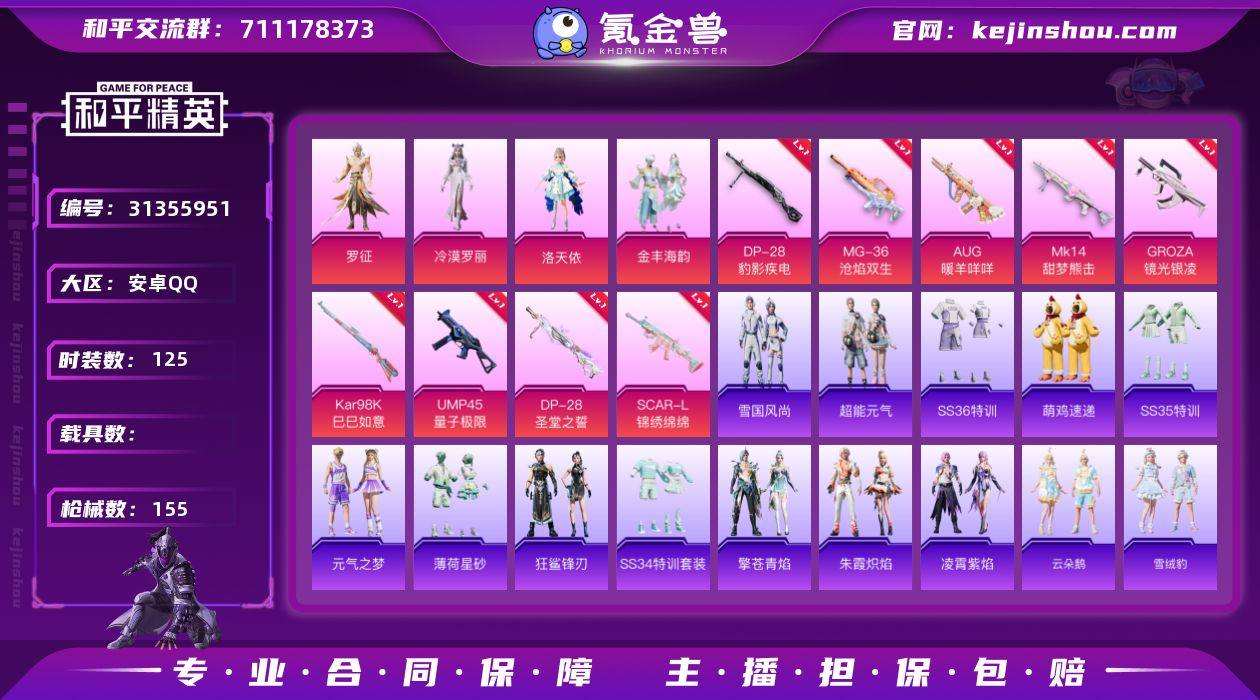 可二次实名【洛天依9特效枪4粉装 秒换绑不用等】 安卓Q区-49884热力值-7印记-125套装-155枪皮 【1稀有】 奇异狩猎者【4粉装】 洛天依 角色-冷漠罗丽 角色-罗征 金丰海韵【9特效枪】 SCAR-L-锦绣绵绵(5级) DP-28-圣堂之誓(7级) Kar98K-巳巳如意(5级) Mk14-甜梦熊击(5级) AUG-暖羊咩咩(5级) GROZA-镜光银凌(5级) DP-28-豹影疾电(5级) MG-36-沧焰双生(5级) UMP45-量子极限(5级)【158热门】 破蛋小黄鸡 深海小丑鱼 极速红龙 白色伏地魔 SS27特训 SS26特训 SS25特训 SS24特训 SS23特训 SS22特训 GROZA-2B战斗服款 GROZA-田园牧歌 GROZA-恐龙拽拽 M762-天降萌叽 M762-彩虹符号 Mk47-乌木金纹 SKS-糯团青竹 UZI-娇憨猪猪 UMP45-蓝色火焰 M249-彩虹符号 M416-蓝色火焰 长空猛禽 特训学院 青涩时光 青年教官 霓虹街区 妙红点点 懵萌河马 魅力单车 猎鹰 蓝色运动 橘黑制服 竞技达人朋克 黄色运动 黄色伏地魔 红色运动 黑色伏地魔 风暴特警 纯真浪花 春日漫步 Mini14-绯穹魔姬 Win94-拳皇·狂花道 海琴烟 MG-36-薄荷星砂 SS34特训 朱霞炽焰 大橘大利 超能元气 SS16特训 SCAR-L-冷漠罗丽 SS21特训 凌霄紫焰 龙魂突击队 SS29特训 破片手榴弹-爆破雪人 SS30特训 鱼渊荷华 擎苍青焰 SS28特训 海盐绵绵冰 燕燕于飞 SS31特训 大砍刀-2P战斗服款 SS33特训 SS32特训 巳巳如意 蜜獾-精灵梦叶罗丽 狂花道·娜可露露 雪绒豹 狂鲨锋刃 SS36特训 热情海星 老实芭蕉 异域银装 智谋强哥 战术大师 JS9-凌霄紫焰 MG-36-凌霄紫焰 ARX-凌霄紫焰 云朵鹅 AKM-极光猎影 极光猎影 P92-凌霄紫焰 顽皮玉兔 平底锅-凌霄紫焰 AKM-彩虹符号 M416-糯团青竹 破片手榴弹-海盐豹豹 AKS-74U-极光猎影 M417-玩趣呆呆