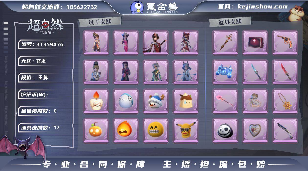 红色皮肤数量:0 金色皮肤数量:0 紫色皮肤数量:8 道具皮肤数量:17 卖家说:超自然青丘一梦号 s1,s4,s6 68挡魔盒,7紫15道具皮 有小药泽引山海 小极品三字id对你坏 氪条500+