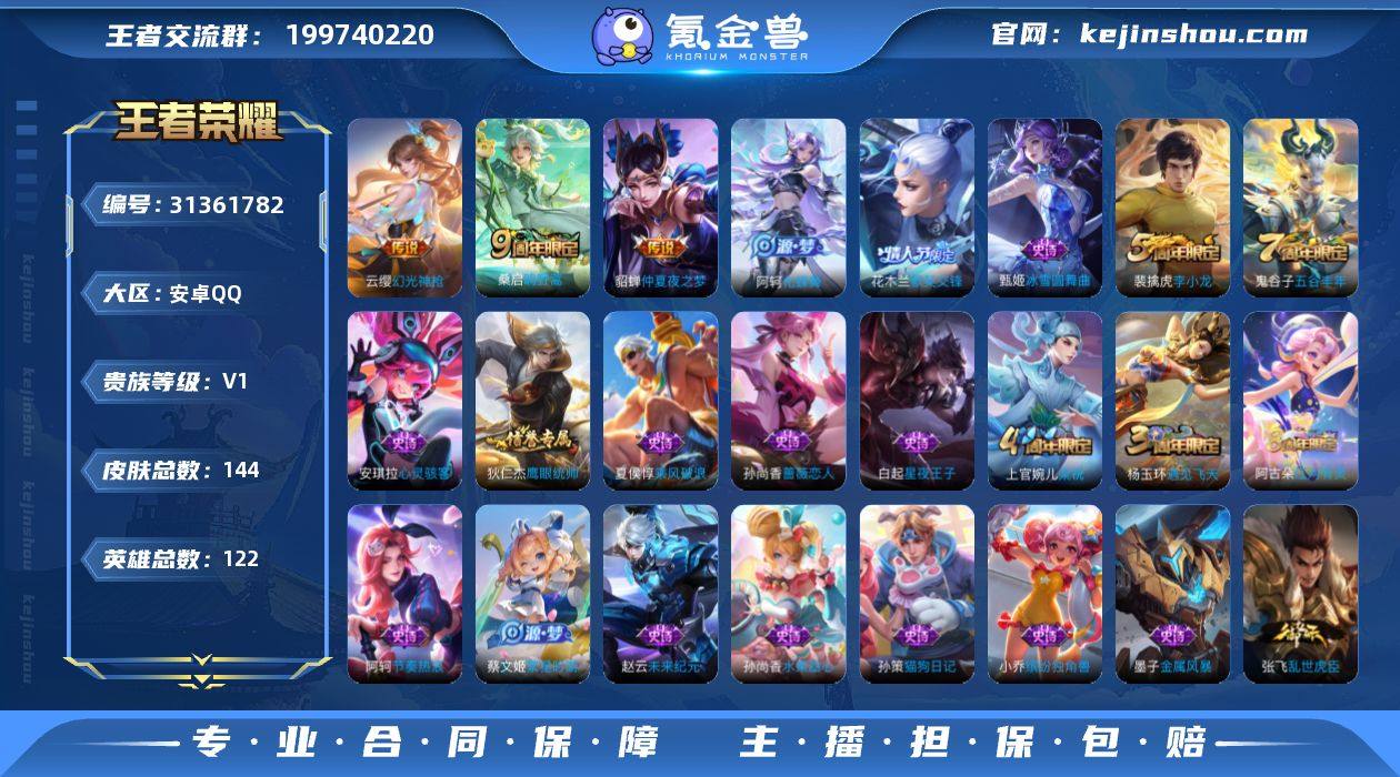 安卓Q-V0-荣耀黄金I段位-122英雄-144皮肤-3传说-25史诗 【英雄全皮】:影全皮 【传说皮肤】:云缨幻光神枪,桑启鸣野蒿,貂蝉仲夏夜之梦 【限定皮肤】:姜子牙天穹之誓,狄仁杰阴阳师,孙尚香蔷薇恋人,芈月重明,夏侯惇朔风刀,典韦穷奇,狄仁杰万华元夜,老夫子醍醐杖,程咬金演武夺筹,花木兰默契交锋,牛魔御旌,钟馗驱傩正仪,杨玉环遇见飞天,蔡文姬繁星吟游,鬼谷子原初探秘者,鬼谷子五谷丰年,弈星混沌棋,明世隐疑决卦,裴擒虎李小龙,狂铁御狮,米莱狄御霄,盾山御銮,上官婉儿梁祝,鲁班大师探海日志,桑启海盐诗旅,阿古朵江河有灵,张良古海寻踪,鬼谷子天穹祈灯,刘邦剑破天穹,周瑜熔金海岸 【赛季限定】:芈月重明,夏侯惇朔风刀,典韦穷奇,狄仁杰万华元夜,老夫子醍醐杖,程咬金演武夺筹,张良古海寻踪,牛魔御旌,钟馗驱傩正仪,鬼谷子原初探秘者,弈星混沌棋,明世隐疑决卦,狂铁御狮,米莱狄御霄,盾山御銮,鲁班大师探海日志,桑启海盐诗旅,鬼谷子天穹祈灯,刘邦剑破天穹,姜子牙天穹之誓 【史诗皮肤】:赵云未来纪元,甄姬冰雪圆舞曲,孙尚香蔷薇恋人,孙尚香水果甜心,妲己魅力维加斯,墨子金属风暴,刘禅绅士熊喵,张飞乱世虎臣,夏侯惇乘风破浪,小乔缤纷独角兽,雅典娜冰冠公主,安琪拉心灵骇客,李元芳逐浪之夏,白起星夜王子,阿轲节奏热浪,杨玉环遇见飞天,孙策猫狗日记,狄仁杰鹰眼统帅,上官婉儿梁祝,蔡文姬繁星吟游,裴擒虎李小龙,花木兰默契交锋,鬼谷子五谷丰年,阿古朵江河有灵,阿轲化蝶舞 【其他皮肤】:韩信教廷特使,韩信街头霸王,露娜哥特玫瑰,阿轲爱心护理,达摩大发明家,赵云忍炎影,程咬金星际陆战队,白起白色死神,扁鹊化身博士,扁鹊救世之瞳,庄周鲤鱼之梦,安琪拉玩偶对对碰,姜子牙时尚教父,妲己少女阿狸,亚瑟死亡骑士,达摩拳王,张飞五福同心,甄...