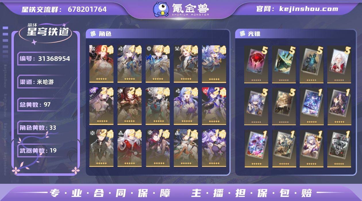 带原神多金号 95级6+1宵宫