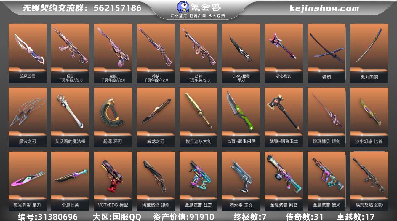 YY -仓库价值91910,剩余R点10,剩余点卷:236, 英雄28 ,未定级(历史钻石II) 【千灵2.0+颗秒套,多热门毕业皮,极品未定级皮肤号】 套装:(千灵华绽//2.0,ORAx颗秒,般若假面//2.0,VCTxEDG队伍,耀鳞威龙,全息波普,起源) 热门皮肤:(侦查幻影,黑波之刃,猫猫狂徒,紫金狂徒,流脓狂徒,塑水正义,天界戍卫,猫猫魔法棒,镭切,奇点战神,显卡莽侠,流脓幻影等) 其他皮肤/卡面/挂饰等请看截图,限时道具/段位等以实际验号为准,如账号因没有维护、赛季更新等不可抗因素发生变化,不属于账号质量问题。
