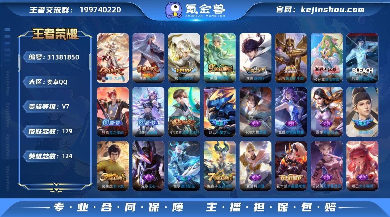性价比自玩号系列!凤求凰!愿照九州拓!炽阳神光!诗剑行!B15936 安卓QQ 179皮7传说