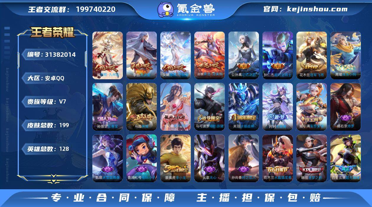 AHC40790 至尊宝-3129紫星币 安卓Q-V7-永恒钻石IV段位-128英雄-199皮肤-7传说-42史诗 【传说皮肤】:女娲愿照千秋盛,澜愿照九州拓,孙策乘龙淬吴钩,公孙离记忆之芯,花木兰冠军飞将,李白凤求凰,狄仁杰超时空战士 【限定皮肤】:白起狰,姜子牙天穹之誓,狄仁杰阴阳师,虞姬凯尔特女王,赵云皇家上将,嬴政白昼王子,孙膑妖精王,扁鹊炼金王,芈月重明,吕布猎兽之王,元歌无心,夏侯惇朔风刀,甄姬游园惊梦,曹操烛龙,典韦穷奇,马可波罗暗影游猎,狄仁杰魔术师,狄仁杰万华元夜,项羽海滩派对,老夫子醍醐杖,关羽冰锋战神,程咬金演武夺筹,韩信逐梦之影,孙悟空至尊宝,牛魔御旌,李元芳银河之约,钟馗驱傩正仪,雅典娜黎明之约,蔡文姬繁星吟游,太乙真人饕餮,鬼谷子原初探秘者,百里玄策原初追逐者,弈星混沌棋,沈梦溪星空之诺,沈梦溪大漠名商,明世隐疑决卦,裴擒虎李小龙,狂铁御狮,米莱狄御霄,盾山御銮,猪八戒西部大镖客,上官婉儿梁祝,鲁班大师探海日志,鬼谷子天穹祈灯,姬小满妄想食味,孙策乘龙淬吴钩,百里玄策超元猎域,沈梦溪龙舞盛年,鲁班七号蔬乡物语,李元芳蔬乡物语,刘邦剑破天穹,周瑜熔金海岸 【年限皮肤】:李白凤求凰,孙策乘龙淬吴钩,女娲愿照千秋盛,澜愿照九州拓 【赛季限定】:孙膑妖精王,扁鹊炼金王,虞姬凯尔特女王,白起狰,太乙真人饕餮,曹操烛龙,芈月重明,典韦穷奇,狂铁御狮,米莱狄御霄,牛魔御旌,盾山御銮,夏侯惇朔风刀,弈星混沌棋,明世隐疑决卦,老夫子醍醐杖,鬼谷子原初探秘者,狄仁杰万华元夜,程咬金演武夺筹,钟馗驱傩正仪,沈梦溪大漠名商,鲁班大师探海日志,鬼谷子天穹祈灯,刘邦剑破天穹,姜子牙天穹之誓,太乙真人谧流熔炉,钟馗虚灵犬护,百里玄策原初追逐者,雅典娜黎明之约 【战令限定】:嬴政白昼王子,吕布猎兽之王,李元芳银河之...